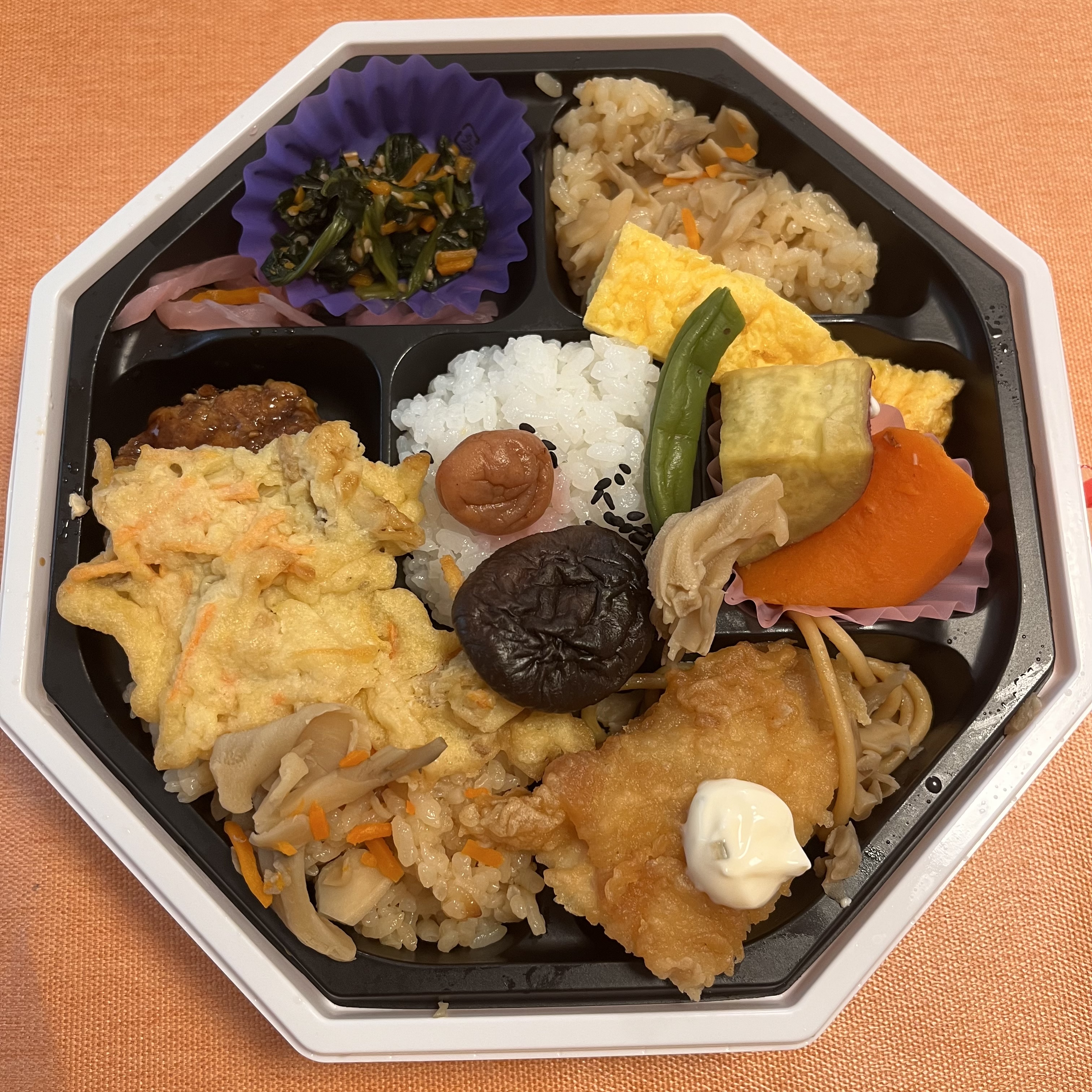 昨日の朝昼兼用飯代は、きのこご飯の季節彩り御膳498円と海老と野菜の天丼(小)328円で