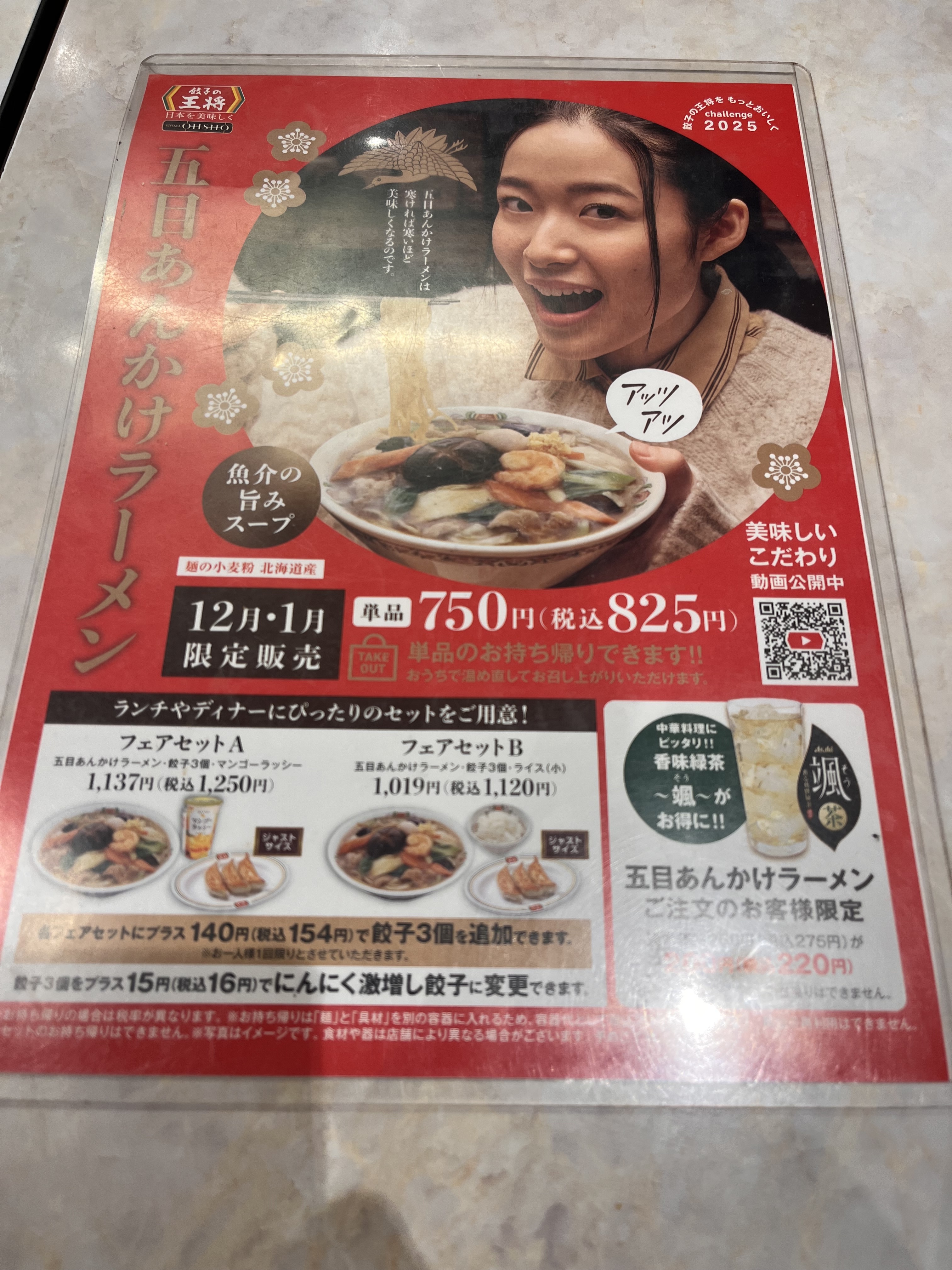 本日の昼飯代は12月・1月限定販売の五目あんかけラーメン825円に