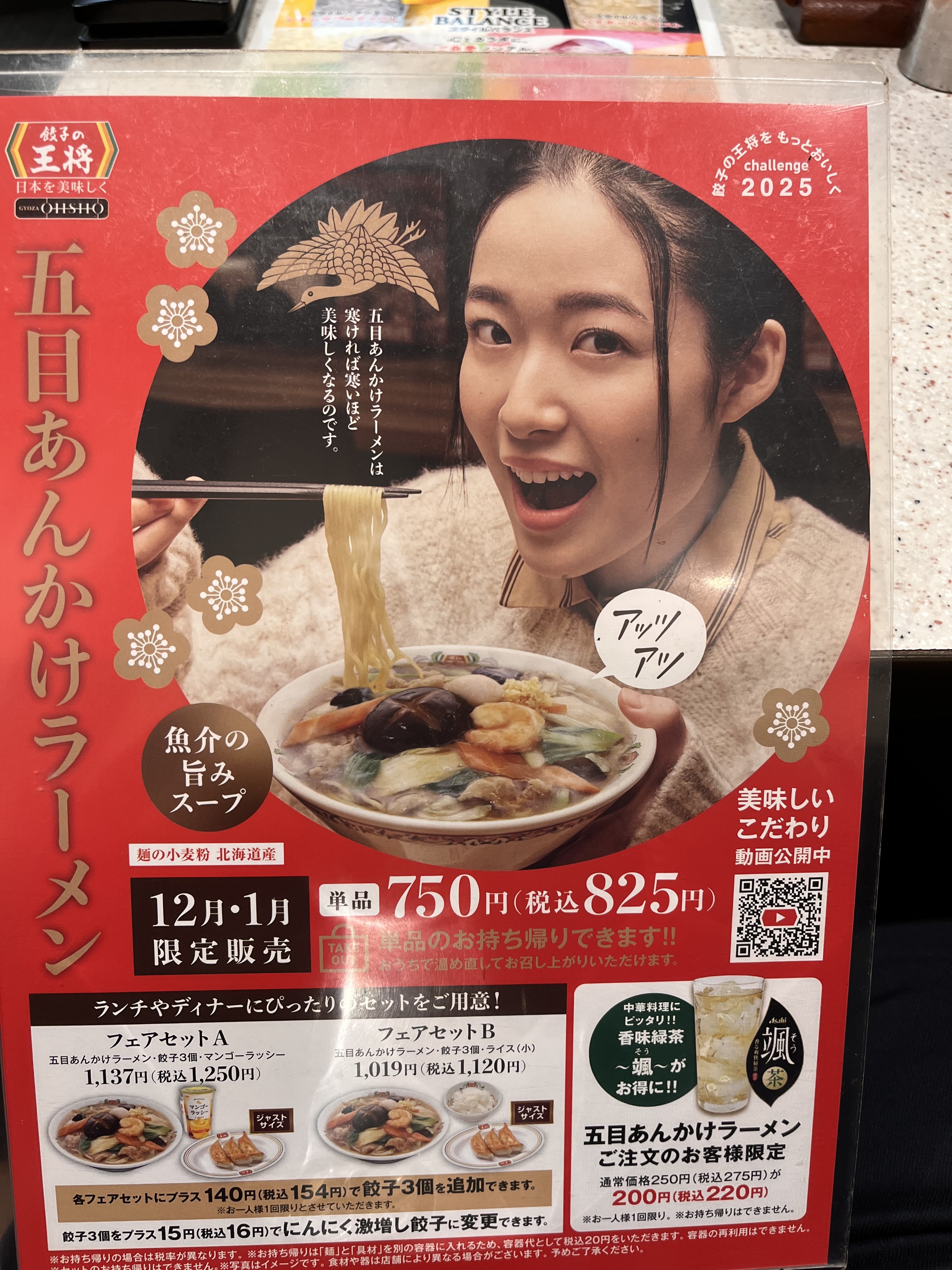 本日の昼間代は、期間限定の五目あんかけラーメンのみ825円なり!