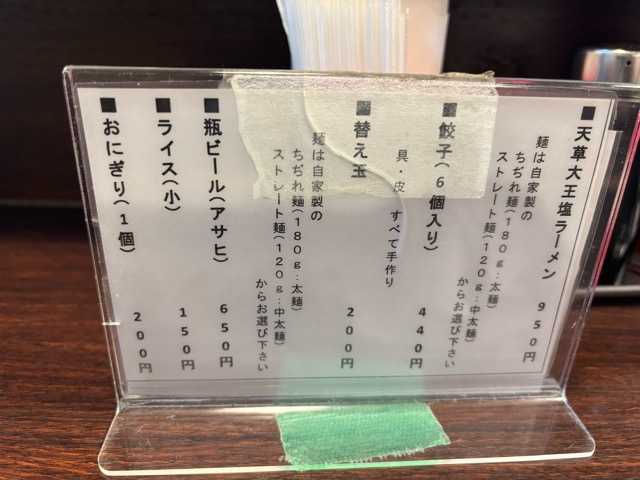 本日の昼飯代は、天草大王塩ラーメン950円に餃子🥟440円でしめて、1390円なり!