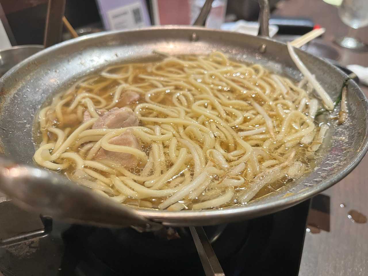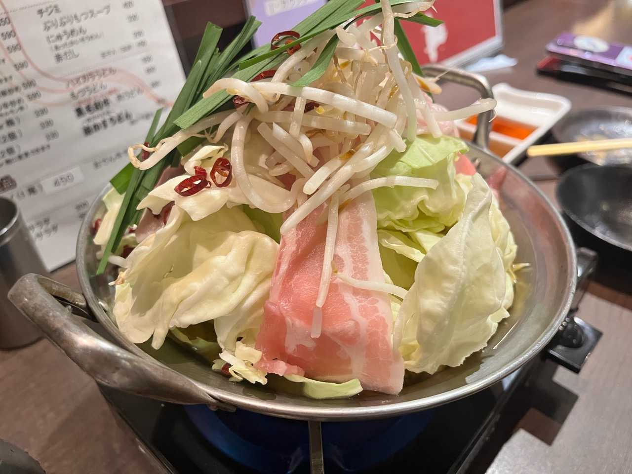 本日の〆の一麺はもつ鍋でちゃんぽんなり、先輩の奢りで0円っす!
