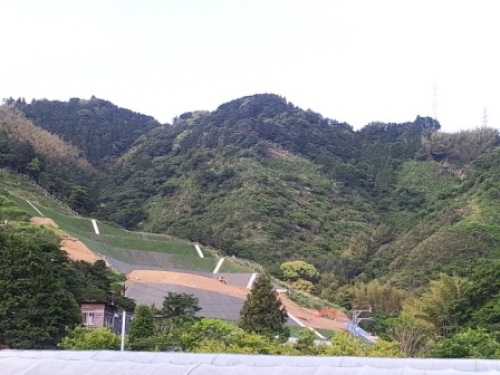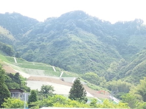 5月19日の山です。山を削る作業はひと段落のようで、水のタンクを置くスペースが確保されつつあります。かなり山を削って、低い位置にタンクを置くと思っていたら、結構高い位置にタンクを置くようです。山を削るのが大変なのか、その高い位置にタンクを置いたほうが便利なのか。詳しくはわかりませんが、かなり遠くからでもタンクが拝めそうです。