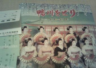昨夜、主人がとっても嬉しいサプライズを持って帰ってきました。「鴨川をどり」の特別席のチケットですキャ~嬉しい本当に嬉しい!!5月1~24日までの期間です。いつ行こうかしら?そして、何を着て行こうかしら~?ランチはどこにしようかな?今日、主人が祇園でランチができるお店をいくつか調べてプリントアウトしてくれました。ワクワクこんな事なら、早く主人の着物を作っておくんだった!!先斗町や祇園を2人で着物で歩きたいです~Yオクとかで仕立て上がりのポリの男子着物とか買おうかな?!!都をどりも行ったことがないので、本当に楽しみです♪どなたか行かれる方、いらっしゃいますか~?現地でお会いできるといいですね♪
