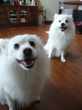 大変ご無沙汰しております最近ちょっとPCから遠ざかりぎみでしたが、みなさんのところへは、こっそりお邪魔しておりました~まだ充電が不完全なようで、思ったように文章が浮かばず、コメントも残せずにごめんなさいね わんこ’Sはみんな元気にしてますよ ボク、元気だよ! 風クンは気づくと寄ってきて、鼻でぐいぐいと私の腕を持ち上げて、 撫でて と要求する甘えん坊ぶり。お正月の間はずっと一緒だったので、仕事が始まってお留守番が増えたからかな~ そして、宇宙ちゃんはすっかり元気爆発ですまだ要安静なのに、走ろうとするし、ソファに飛び乗ろうとするし目が離せません ママがおとなしくしなたいってうるたいんでちよ もちろん、羽衣ちゃんも元気ですよ年末に、腰のあたりにイボが出来ていたのですが、お医者様に見ていただいたら、ただの脂肪(ニキビみたいなの?)であることが判明。押したら白いのがうにゅって出てきました。なんとも無くって良かった~そして、私とおトイレまで一緒に入ってくる、ストーカーっぷりも健在です。 おトイレはママさんとふたりっきりになれるから嬉しいの♪ そして、更新もしてないのに、カウントも77000も超えて、数日で77777になりそうです。今回のカウプレは、私の編んだ小物にさせていただこうかなと思います今のところ、アームウォーマーやネックウォーマーで検討中。詳細はまた後ほど。。。 コメントいただいた皆様、お返事遅れてごめんなさい。必ずお返事書きますので、もう少し御時間くださいね。