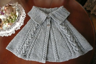 少し前に、年末から編み編みしていたものが編みあがりました。最近のんびりしちゃって、先日やっと写真を撮りました アラン編みのケープです♪ 早速、オードリーちゃんに試着していただきました 斜め前からと、後ろから~♪ 少し大きめな衿が可愛いでしょ~~肩がほっこり温まって、良い感じです。 カウプレ用の小物は、今、せっせと編み編みしています。素人の作品なので、既成品のようには行きませんが、それでも気に入ってくださる方がいたら嬉しいなぁ。 今週末には、品物の画像と、詳細をUP出来ると思いますので、その頃また遊びにいらしてくださいね