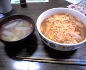 インスタント麺だけど、残ってたコンソメスープと茹でたから味がしっかり付いた+*.゜・。.゜*