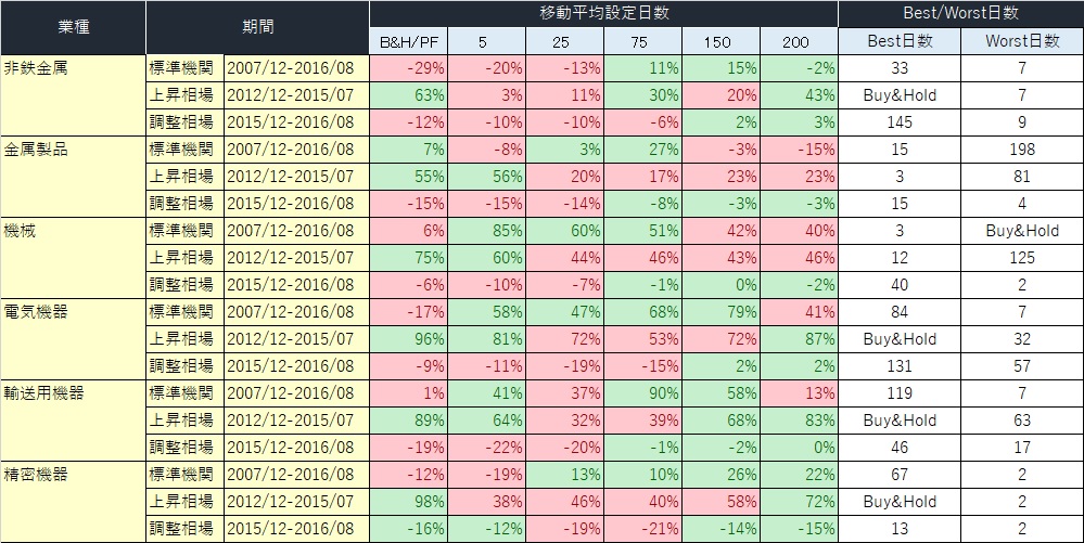 ・移動平均の設定日数は(2日~245日)として、ぞれぞれのパフォーマンスを計測する。(Buy&Hold含む。)