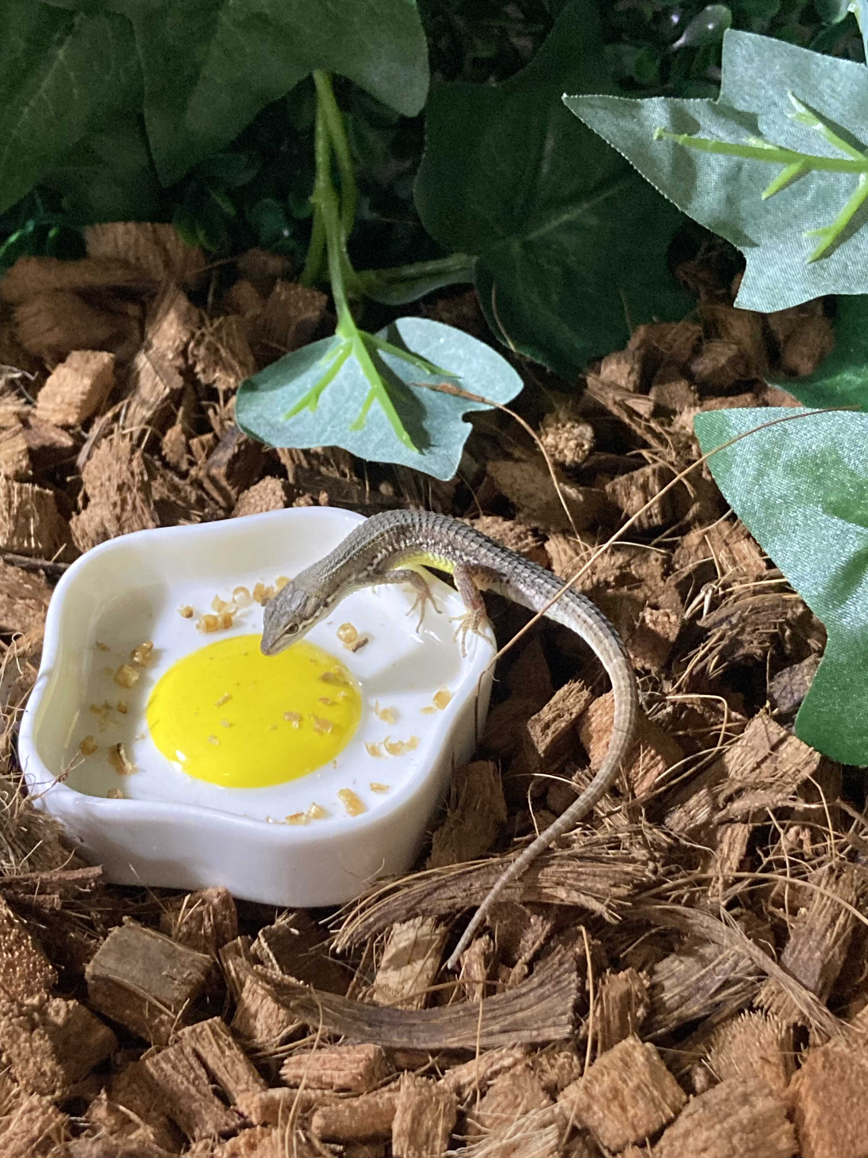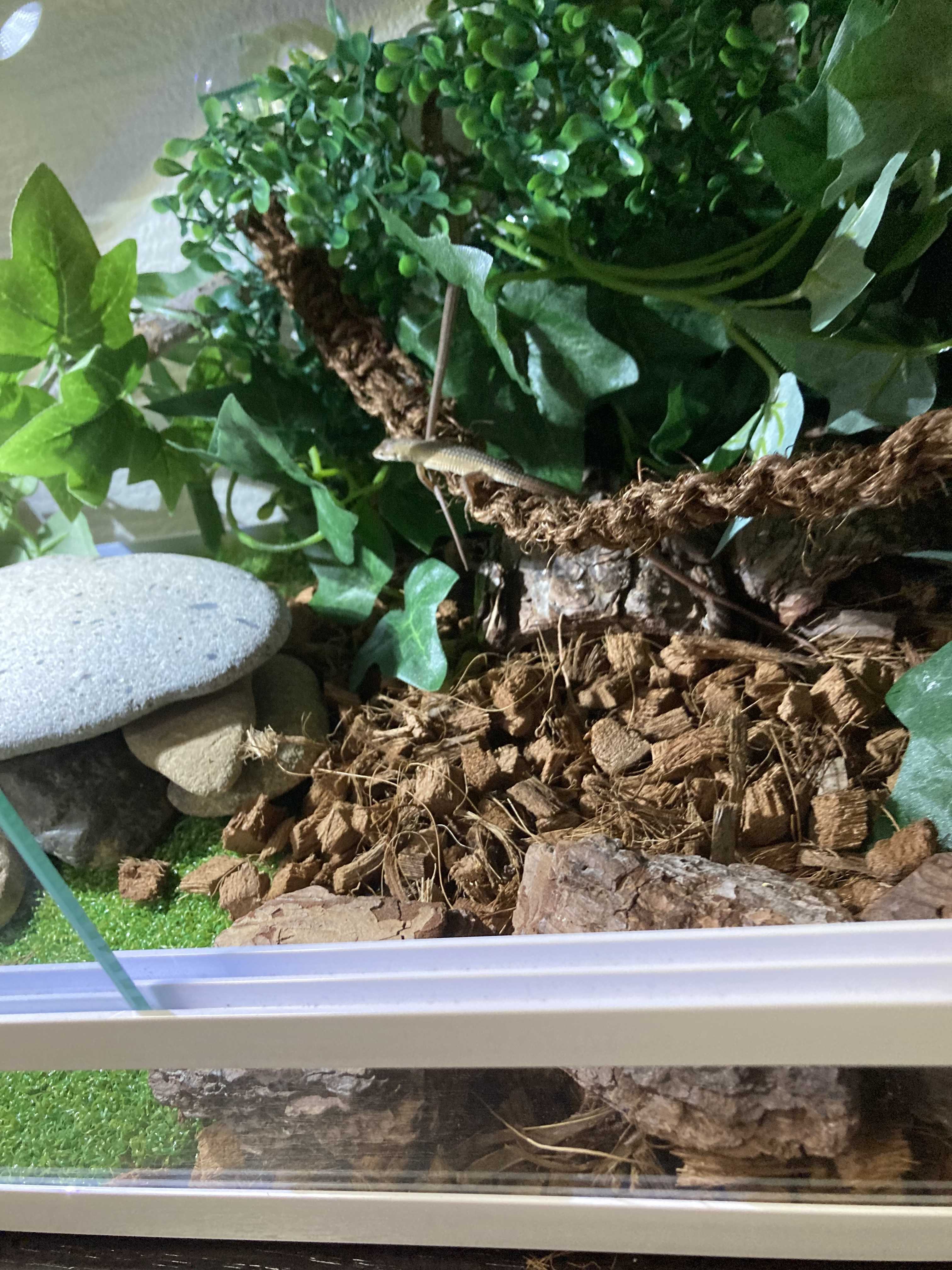 とうふさんの脱皮始まりましたー。今回もどんな綺麗な姿になるかとても楽しみです!最近こもってる時間が長いせいかカナヘビ が出てこない時間が多いので貴重なショットです。