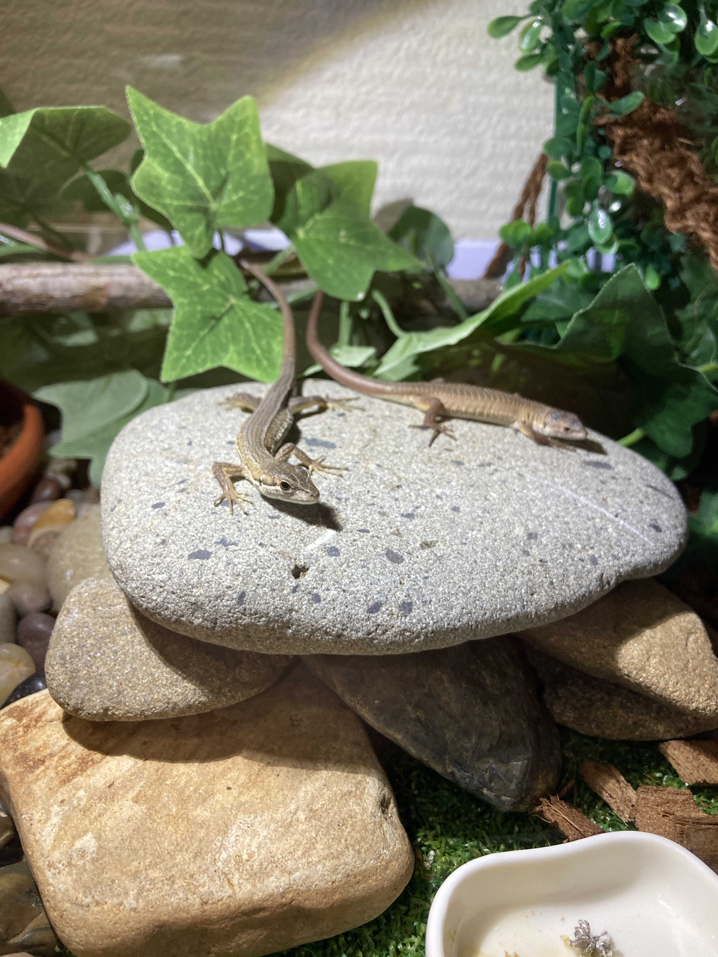 久しぶりのカナヘビ!!無事でした!ただ各ゲージにしたせいなのか野生に帰ったというか、個性が強くなったというか、飼い始めに戻った気がします。試しに3匹入れ直したらカナ太郎が追いかけて攻撃?を執拗に繰り返していたので離しました。また時間を見て一緒に居られる時間を作ってみたいと思います。結局一緒に入れてあったコオロギは食べず乾燥ミルワームを食べて過ごしていた様子でした。久しぶりのコオロギを頬張ってる姿可愛い。今日からまたカナヘビ可愛がるぞー!