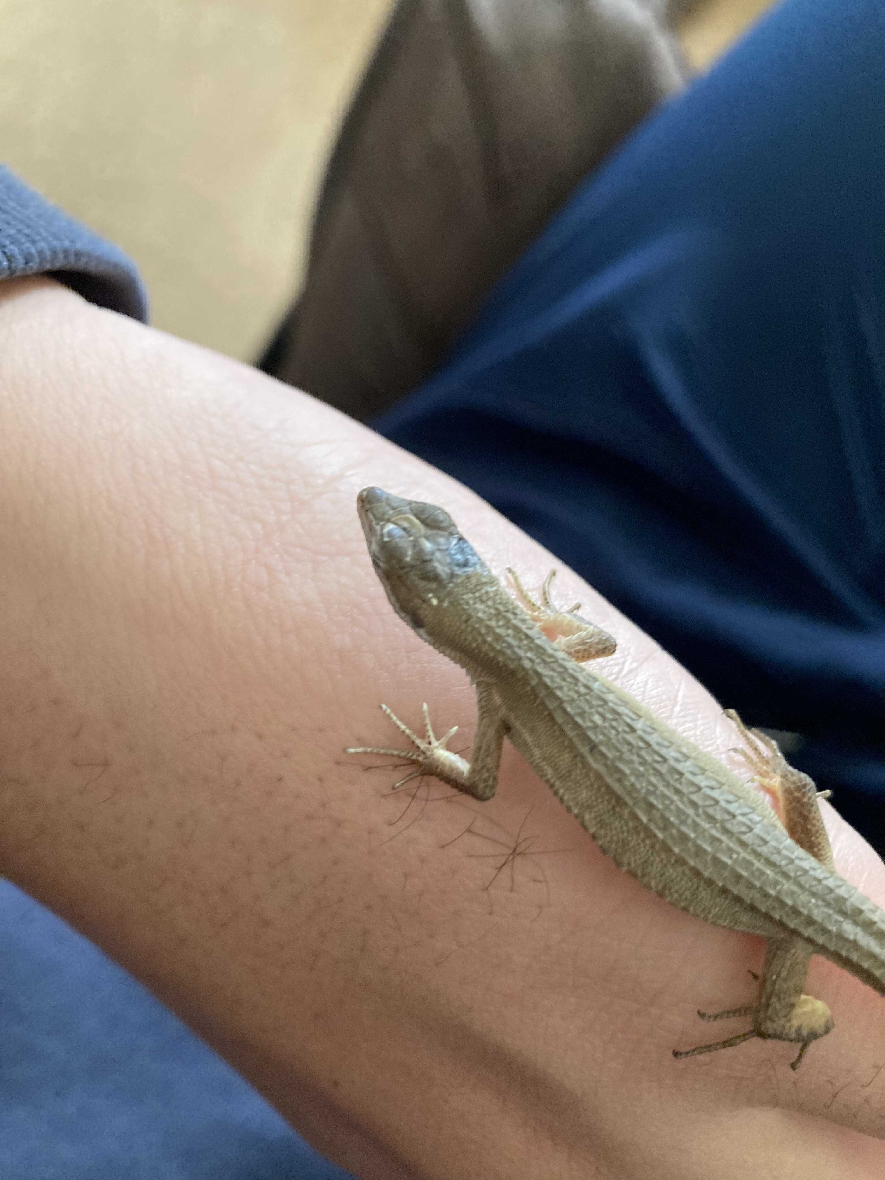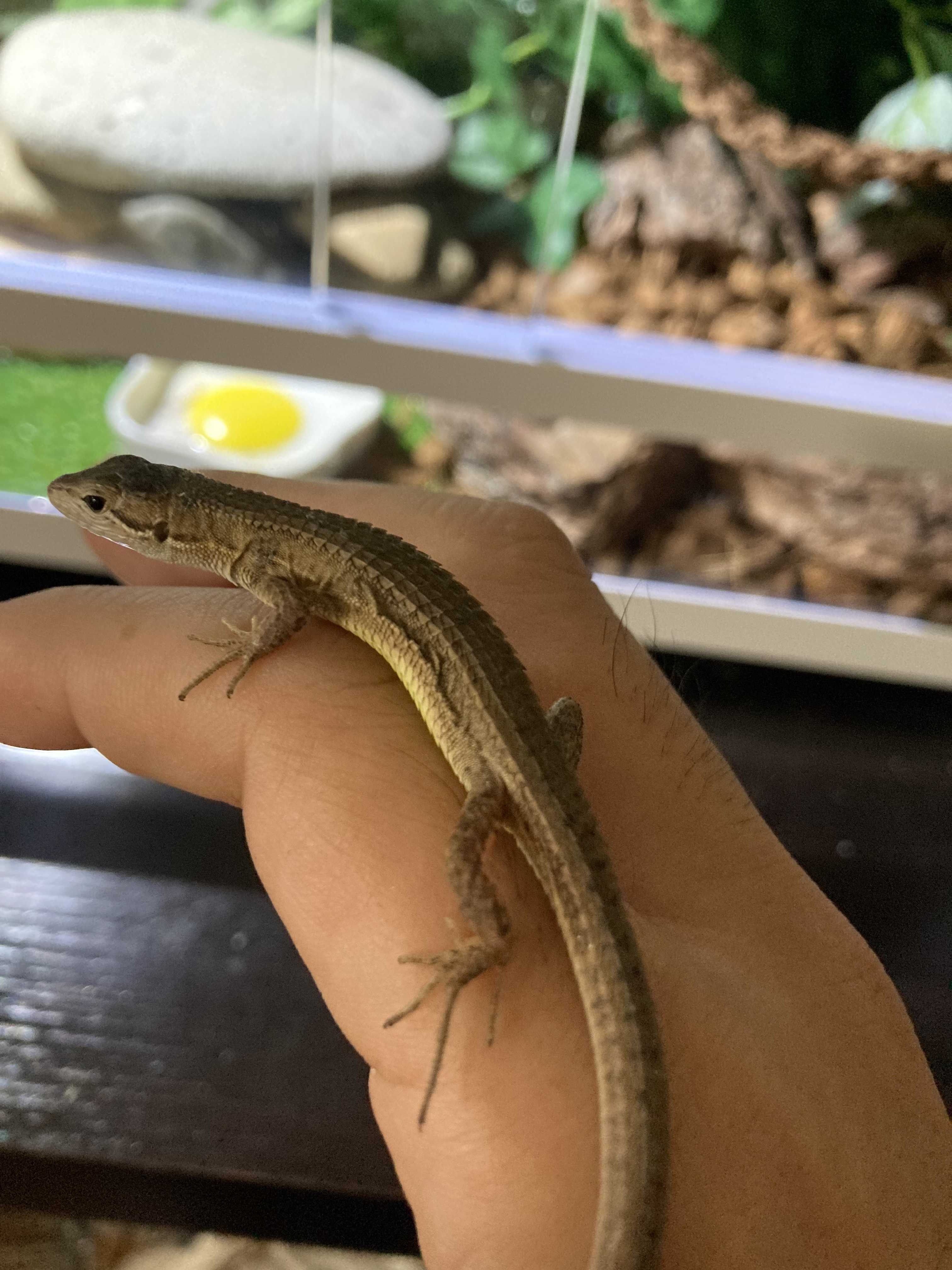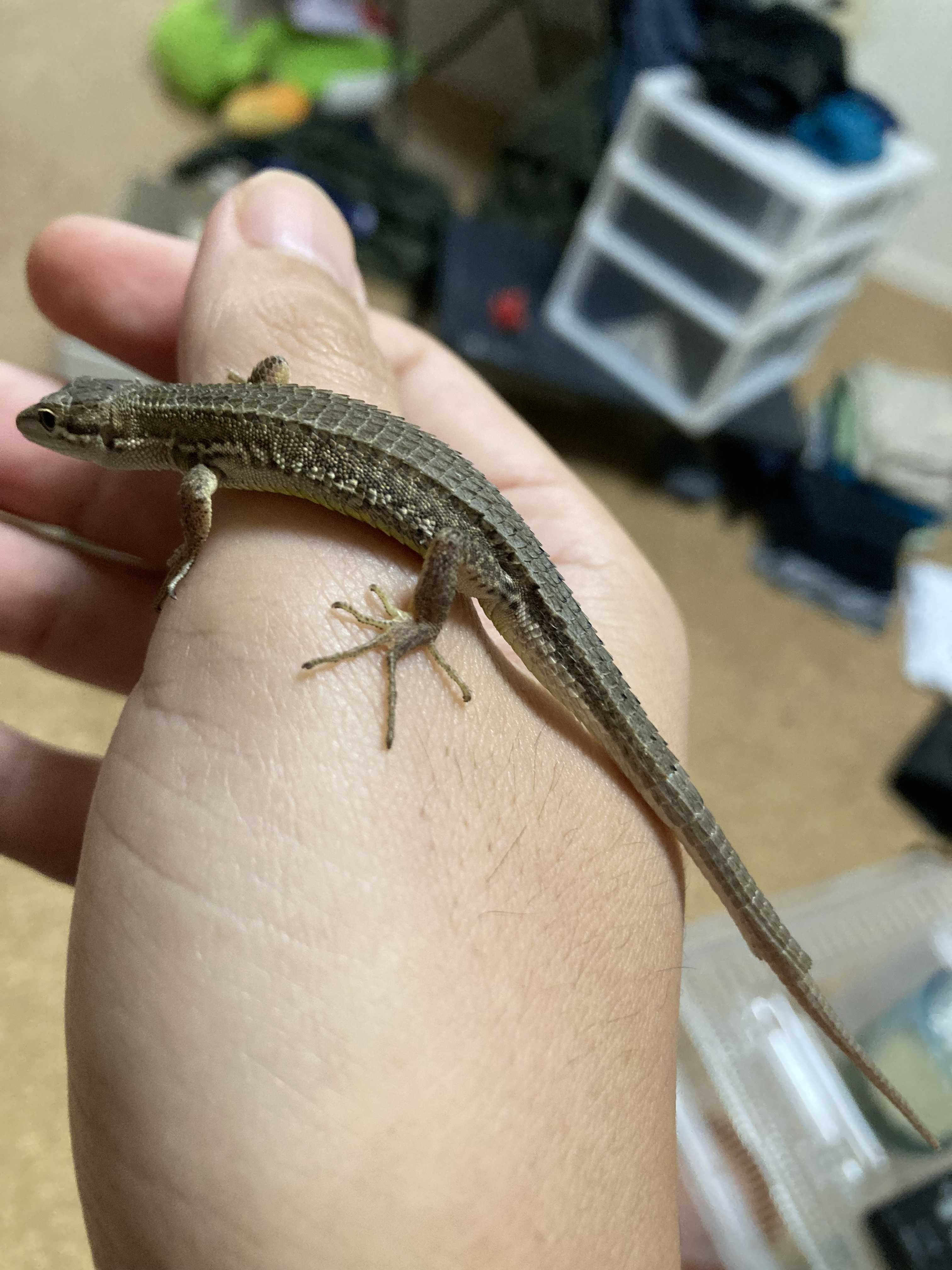 久しぶりのカナヘビは可愛いです!カナ太郎を手に乗せると頭を指先に乗せてくれました。そこから首傾げたり舌をチョロさせたりしてて完全に可愛いと分かってての行動だと思われます。こいつ危険だ!早速貢ぎの蜘蛛を探してきたいと思うチョロいうきうきさんでした。