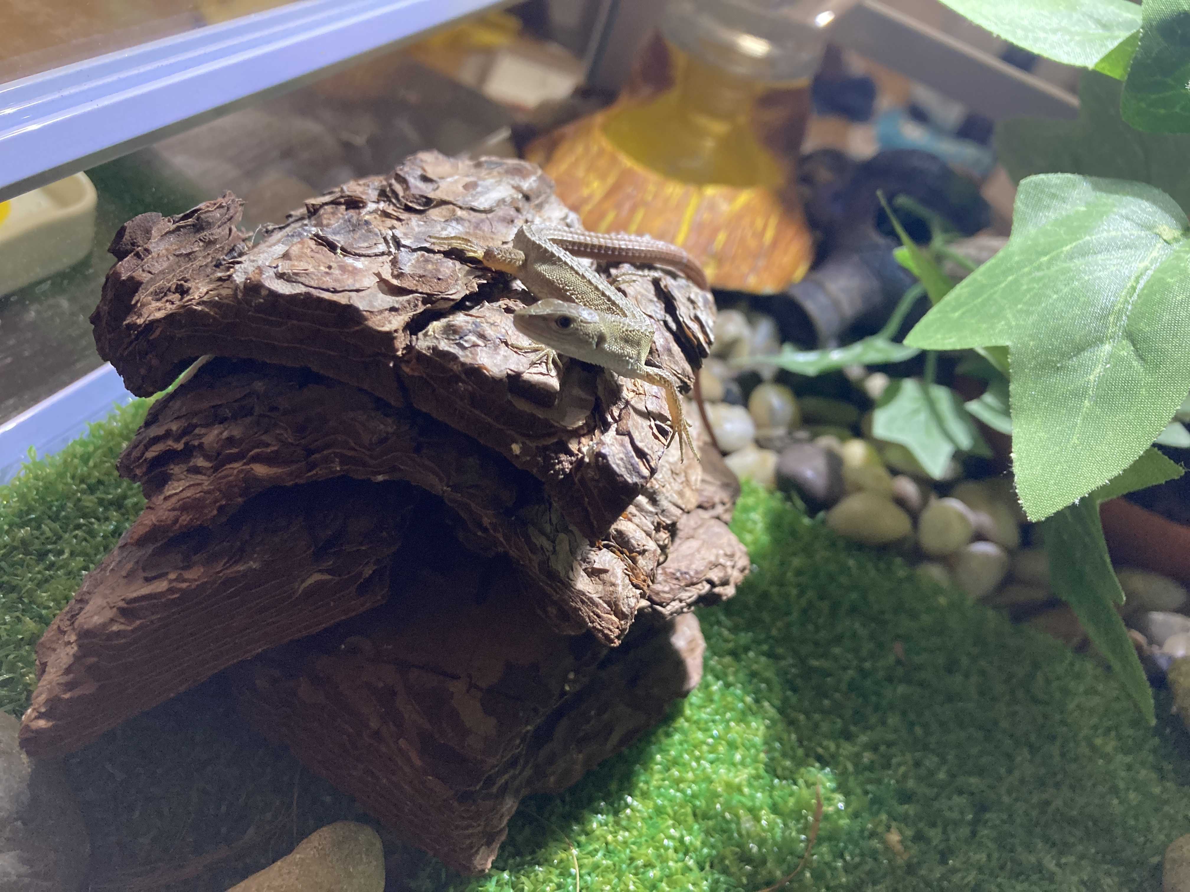 最近冷え込み始めてきましたが、暖突のおかげで安定した温度をキープできています。湿度は水置きと水苔ゾーンを置いてあって40%...そろそろ水吹きしないとかなー。どて煮は大きくなってきたなーと思うけど顔を見るとまだまだ幼く感じます。カナ太郎を見るとやっぱ大人だなーと思います。最近3匹とも目つきが優しくなったなーと感じます。気のせいかもしれないけどここに慣れてのんびり出来ているのかなーと嬉しく思います。かっ