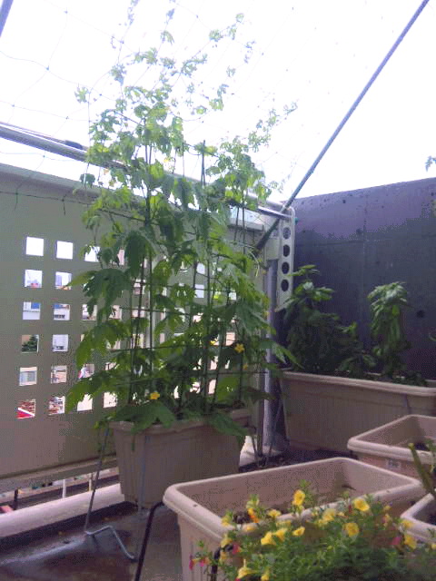 行き場を失ってふて腐れてバジルに巻き付いていたりしたゴーヤ。