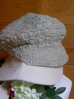 そして、セールのナチュラル系糸でキャスケット編みました。