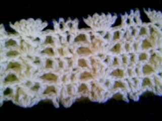 ブルーの毛糸のストックが心細くて、模様編み部分をオフホワイトにしたんだけど
