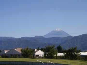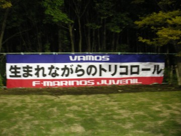 雨の新潟を早朝に出発し、向かうはこちら。今日はJユースカップグループリーグ第2戦 甲府ユースvs横浜ユース。新潟から南下すれば早そうなんだけど、いい交通機関がなく、結局一度東京まで新幹線で出て、それからあずさで甲府、中央本線で竜王。何だかまどろっこしいがこれが一番早い。竜王駅でユース仲間と合流し、タクシーでスタジアムに。タクシーは途中釜無川沿いを走り、車内では信玄堤の話なんかも。(よく知らなかっから帰って調べた。いや~~、遠征てタメになりますねぇ) スタジアムまではタクシーで3000円ちょっとだった。新潟は土砂降りだったが、甲府は秋の青空。ここのところの雨で空気も澄んでいる。その青空に南アルプスと富士山が映えて美しい。いいところにあるスタジアムだ。 一通りダンマクを張り終わった頃、突然Hっち(笑)登場。何でも甲府でバスに乗ったはいいが、停車場がわからず終点まで行ってしまい、ヒッチハイクで来たらしい。Hっち、超バモス!今日はマイクと秋元が代表キャンプで、谷島がストライカーキャンプで不在。フォーメーションは高円宮が終わってからずっと試している4-2-3-1で1トップは木村。立ち上がり、横浜はどうもかみ合わない。中々攻撃のカタチができず、クラ選の頃の強さは感じない。こりゃ、意外と苦戦しそうだと思い始めたころ、山岸の見事なスルーパスに反応した柳がゴール(前半23分) その4分後にはCKから三浦がきれいなヘッドで追加点。この辺から、ようやく、横浜のプレイがかみ合うようになる。前半ロスタイムには、柳が一人でボールを持ち込み、出すところを探しつつドリブルで深く切り込み、ついに渡す相手が見つからず、ほとんど角度のないところから苦し紛れの(?)シュート。これが決まり、3-0。やっぱ、シュートは打たなきゃ入らないね。ホームの甲府はサポーターが数人来ていて、太鼓つきで応援。一番コールが多かったのが、GKの山本陽介君。ヨースケコールに、こっちも斉藤投入してヨースケ対決したいねと話していると、後半17分、木村に代わり、ついに陽介登場。高円宮初戦で負傷退場して以来の出場。お帰り陽介。サポもヨースケコール。追加点の欲しい横浜は、加藤、富井、森谷と攻撃的な選手を続々と投入。ビックチャンスも再三あったが、ヨースケコールが倍になったせいか、山本君の方がにわかに好調になり、横浜のシュートをことごとく弾く(笑) 31分に三浦のヘッドで4点目を上げたものの、前目の選手のゴールはなかなか決まらない。それでも、左サイドの富井がフリーになる場面が多く、左サイドからいいクロスが続けざまに上がり、ほとんど甲府DF陣はゴール前に釘付けになる。このあたりの攻撃は好調期を思わすような素晴らしさ。特に、富井、森谷と怪我が治った選手が積極的にプレイしているのを見るのはうれしいもんだ。何とかエース陽介に点を取って終わって欲しかった。残り時間も少なくなり、今日のゴールはお預けかと思った頃、富井のクロスを頭で押し込み復帰第1弾。喜びが収まる間もなく、今度は森谷とのパス交換から、ドリブルで持ち込み右足シュート。復帰戦できっちり結果を出すあたり、やはり9番にふさわしい。すっきりと晴れ渡った青空にふさわしく0-6で快勝。昨日の新潟が酷かっただけに、ユースに救われた。京都も行くよ。_______木村(12)_______柳(7)___幸田(15)__大久保(22)____三浦(6)_山岸(18)_____田代(3)_藤川(4)_佐藤由(5)_奈良輪(2)_______当銘(21)_______交代: 後半17分 木村→斉藤(9) 後半26分 山岸→加藤(8) 後半26分 大久保→富井(10) 後半38分 奈良輪→広田(20) 後半38分 柳→森谷(25)