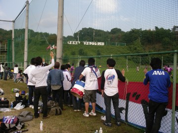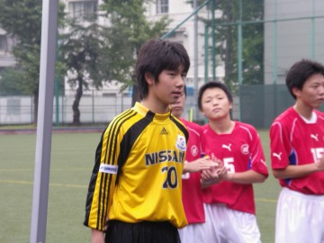 坂道を急いで降り、城陽グランドに到着したのは後半開始10分ぐらい。合流する直前、マイクが3点目を決めたらしく、歓声とマイクコール。くそ、タクれば良かった・・・ 試合は横浜の一方的な試合ながら、陽介と相手キーパーとの相性がバツグンで、到着してからは惜しいチャンスばかりで得点はなし。結局、前半の陽介、佐藤、後半のマイクの得点で0-3で快勝。つ事で、すんません、レポはユースオフシャルで(笑)____斉藤(9)_マイク(11)____柳(7)___________富井(10)____三浦(6)_山岸(18)_____田代(3)_藤川(4)_佐藤由(5)_奈良輪(2)_______秋元(1)_______交代: 後半23分 柳→大久保(22) 後半31分 佐藤→広田(20) 後半34分 山岸→加藤(8)