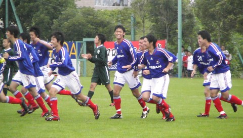 トップチームは今日、法政大学と練習試合を行った。45本×3。▼1本目:4-0(河合、隼磨、マルケス、中澤) 達也、栗原、松田、中澤、隼磨、マグロン、河合、ドゥトラ、清水、久保、マルケス▼2本目:0-0 哲也、栗原(→中西)、那須、中澤(→裕介)、塩川、上野、奥(→狩野)、平野、功治、大島、吉田▼3本目:2-1(狩野、マイク) 下川、中西、那須、裕介、天野、田ノ上、狩野、小宮山、山本龍:練習生、マイク、幸宏1本目はほぼベストメンバーか。マイクはU-19の遠征4試合+キロロ2試合+今日の試合と何気に出場試合7試合連続ゴール中。次はJの公式戦で初得点を。練習生の山本龍って誰だろう?法政大学側は2本目途中からユースOBの富井が出場した模様。ボランチと右サイドをやっていたようだ。今日は主審じゃなかったんだね(笑)ユースOBといえば、神奈川大学サッカー部のHPに↓なニュースが。 7月 9日(日)この度、神奈川県の成年国体に我が神大サッカー部から2年の安藤(寛)と1年の藤川の2名が選出されました。まずは8/12、8/13に栃木県で行われる関東ブロック大会での活躍が期待されます。これを勝ち抜いて代表になると10/1~10/4の日程で兵庫県にて行われる国民体育大会へ出場することになります。2人には神大を、そして神奈川県を代表して精一杯戦ってきてもらいたいと思います。おお、藤川も頑張ってるな。去年は神奈川少年代表メンバーに選ばれるも、出場機会はなかった。今年の国体はぜひ出場して欲しい。関東ブロック大会の日程は、以下の通り。2つ勝つと国体出場。残念ながら全クラU-15とかぶっているので見れないが・・・ 1回戦 8/12(土) 12:00 vs東京都 @壬生総合運動公園陸 2回戦 8/13(日) 12:00 vs(埼玉県vs山梨県) @栃木グリーンスタジアム国体会場は、神戸ウィング、ユニバー記念、神戸総合運動公園陸上競技補助競技場、しあわせの村運動公園。ところで、藤川は未成年だけど成年の部に出ていいのだろうか。まぁ、いいから選んでるんだろうが(笑)