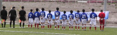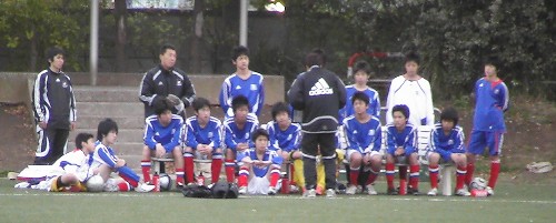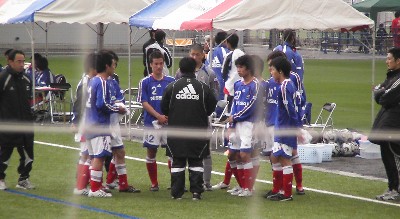 今日のマリノスタウンは下部組織総結集。ユースの試合中にはJYの選手たちがスタンドで観戦していた。マリノスタウンが出来てトップとユースの距離が近くなったのはいいことだが、ユースとJY、プライマリーの距離が近くなったのもいいことだと思う。多くのサポーターの前でプレイするユースの選手を見て、自分もあのサポーターの前でプレイしたいと思って、よりいっそう頑張ってくれればこんなにいい事はない。そのためにも、1試合でも多くユース公式戦をマリノスタウンで!プリンスリーグが終わった後、CグラではまだJYが試合をしていたので、速攻そちらに移動。横浜は新子安U-15。相手はオエステ。最初から見れなかったので、今回はまったりと記録もとらずに観戦。横浜は攻撃の軸の松本君、守備の要の小林君、品田君を欠く苦しい布陣(剣持君はどっちの軸/要だ?:)で、前半のフォーメーションはなかなか斬新。慣れていない布陣のせいもあるだろうが、守備の連携がまだまだだった。オエステを応援している某オヤジドラマーさんのブログを拝見すると(いつも見てます、ってこれ見てるかな?)、前半はやはり2-2だったようだ。後半は0-2。おまけの1本は1-1。トータルスコア3-5でオエステの勝ち。横浜の得点者は平石君、菅原君、荒川君だったかな?来週からU-15リーグが始まるが、相手は強豪揃い。1試合1試合全力で戦って、もっともっと成長して欲しい。そして去年はついにいけなかった全国の舞台に今年は再び立とう!そのためには下からの突き上げも重要。U-14の選手も頑張れ!<前半>_____菅原慶人(11)__吉田眞紀人(9)____平石直人(7)_____________高溝竜稀(8)_____横山恭嗣郎(13)__渡辺大斗(5)_____星雄次(15)_関森悠斗(6)_加藤祐介(3)_星広太(14)__________椎橋拓也(1)_________<おまけ:新子安U-15新背番号(一部推測)>1:椎橋拓也、2:剱持和義、3:横山恭嗣郎、4:小林広樹、5:渡辺大斗6:関森悠斗、7:平石直人、8:高溝竜稀、9:吉田眞紀人、10:松本翔11:菅原慶人、12:伏木祐太、13:横山恭嗣郎、14:星広太、15:星雄次16:白河部亮、17:荒川卓斗、18:岩浪晃大、19:品田大輔、20:盛丈倫剱持君の2番、伏木君の12番、横山君の13番、盛君の20番・・・ 何かイメージ狂うなぁ・・・
