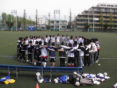 関東プリンスリーグ開幕。横浜ユースのオープニングゲームはマリノスタウンで韮崎高校との対戦。その前に、ちょっと寄り道して桐蔭学園グラウンドで桐蔭学園vs鹿島学園を観戦。桐蔭学園は自宅前のバス停から直行バスが出ているので一番楽チンな試合会場。かえって余裕を持ちすぎて結局会場に到着したのはキックオフ10分前だった。会場に到着して、仲間の待つ真ん中付近まで行こうと鹿島学園のベンチ外選手の後ろを通ると、一列になって座っていた選手たちが一斉に立ち上がって次々と挨拶をしてくる。こんにちはと何度も返しつつ、急ぎ足で進む。困るなぁ。今日は中立の立場で観戦しようと思ったのに、そんなことをされると鹿島学園を応援しちゃいたくなるじゃないか(笑) にしても、鹿島学園の選手たちの礼儀正しさには関心した。この試合を見に来たのは、同じグループのチームの偵察という側面も無きにしもあらずだが、一番大きなのは下部組織OB選手たちのプレイを見たかったから。桐蔭学園はスタメンに武田大(GK:1)、日高慶太(MF:10)、荒瀬陽介(MF:14)。サブに菊池駿(DF:22)。一方の鹿島学園は、スタメンに阿渡真也(DF:2)、小谷駿介(MF:8)。サブに三橋隼斗(FW:?) 三橋は新1年にも係わらずサブとは、鈴木監督から評価されているんだなぁ。ベンチ外選手の中にも、石渡野明や中居翔太、小島健太郎らの姿が見える。 満開の桜をバックに、日本の春的キックオフ。出だしから桐蔭が試合の流れを掴み、鹿島のゴールに迫る。鹿島は桐蔭の早い展開と激しいぷレッシングのサッカーにボールがつまくつながらず、押し込まれる展開が続く。桐蔭左サイドはU-16代表候補、神奈川国体選抜にも選ばれた日高。対する鹿島DFは阿渡。このマッチアップは今日のところは日高の方が一枚上だった。阿渡はチームでのなすべき役割や立場がどうもしっくりきてない印象。仲間たちとコミュニケーションをしっかり取って、楽しくサッカーをやって欲しい。前半12分に岡山永(MF:11)のゴールで桐蔭が先制。その勢いで終始桐蔭がゲームを優位に進めた。後半に入り鹿島が盛り返す時間帯も増えてくる。右サイドの小谷は前半はほとんど仕事らしい仕事ができなかったが、後半途中からはボールにもよく絡めるようになった。しかし、前がかりになった鹿島の隙を突き、後半27分に素早い攻撃からまたもや岡山永のゴールで桐蔭が追加点をあげる。まずは1点を取って、流れを手繰り寄せたい鹿島がその2分後、CKから山田直輝(DF:4)のゴールで1点を返す。鹿島は左サイドの川上翔太(MF:14)の積極的なプレイから何度かチャンスを作るが、桐蔭の厚い守りを崩せず、追加点を上げられない。試合は2‐1で桐蔭が勝利。試合終了と同時に、あらかじめ呼んであったタクシーであざみ野に向かった。OBのご父兄の方々にご挨拶したかったが、残念ながら時間がなかった。飲み物の差し入れをしていただいた某選手のお母様、どうもありがとうございました。OB選手のみんな、横浜戦でまた会おう!(といいつつ鹿島学園戦はJFAカップで見れないのだけど・・・)