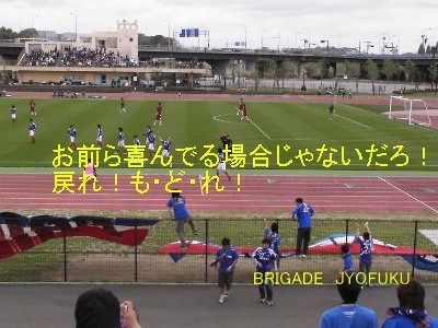 我が愛する横浜ユースサポ諸君、我々は今重大な危機に瀕している。我が横浜が読売や市船とプリンス3連覇をかけて戦っているのは周知の通りである。だが、私は読売や市船の脅威を説いているのではない。脅威はむしろ我々にある。我々は勝ち点2を失った。これは敗北を意味するのか?否!始まりなのだ!我々の油断が勝ち点2を奪いさったのである。我々は、若き横浜と喜んではならなかったのである。駆け寄ってくる若き横浜を追い返さなければならなかったのである。それを習志野は同点弾を以って我々に示してくれたのだ!この悲しみも怒りも忘れてはならない!一瞬たりともたるむことなく、最後まで全力で戦い抜く者こそが真の勝利を得ることが出来るということを再び思い出さねばならないのである。そのために、今ここに我々は”BRIGADE JYOFUKU”の結党を高らかに宣言する。”BRIGADE JYOFUKU”は諸君等の力を欲している。最後の最後に訪れる歓喜のために、諸君の力が必要なのだ。横浜ユースサポよ立て!悲しみを怒りに変えて、立てよ横浜ユースサポ!我々”BRIGADE JYOFUKU”の主張は唯一つである。__________端戸仁(14)__________斎藤学(10)_____水沼宏太(9)____曽我敬紀(15)______荒井翔太(19)__佐藤優平(18)______金井貢史(7)_甲斐公博(13)_臼井翔吾(24)_奥山正洋(4)__________佐藤峻(16)___________得点: 前半10分 習志野:原雄一郎(18) 後半12分 横浜:齋藤学(10) 後半06分 横浜:水沼宏太(9) 後半43分 習志野:水野晃矩(11)交代(横浜のみ): 前半35分 佐藤優平(18)→高久朋輝(8) 後半32分 曽我敬紀(15)→松尾康佑(12) 後半38分 齋藤学(10)→出口将司(11)