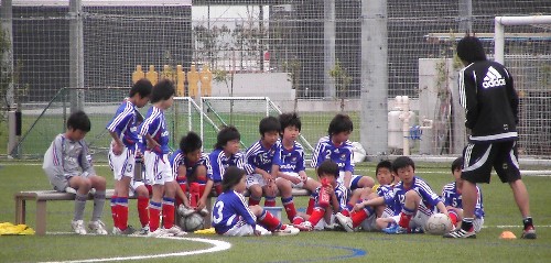 見たことのない選手をはじめて見る瞬間っていうのはわくわくする。どんな才能を目にすることができるか?お気に入りの選手を見つけられるか?・・・というわけで、今日は木村和司杯という横浜にとって落としてはいけない大会を見に、るんるん気分で(って古いよ!)マリノスタウンへ行った。この大会は小学生年代の大会で、新子安U-12と新子安U-10が参加している。今日マリノスタウンで行われるのは、新子安U-10が参加している8人制カテゴリーのグループリーグ2試合。U-10の何人かはU-9時代に見たことがあるけど、本格的に見るのはこれがはじめて。試合は12:00からなので、10:00から行われるトップの練習をまったりと見学。強風でゴールが倒れ、危うく高桑を直撃するところだった。気をつけないと危ないなぁ。倒れてからは水沼さんがゴールの裏から抑えていた。それを狙って強烈なシュートをお見舞いする小宮山に坂田。何か、恨みでもあんのか(笑)■新子安U-10vs原FC先週あったグループリーグ第1,2戦はそれぞれ17-0(vs野庭FC)、16-0(vs並木SC)の圧勝だったが、今日は強敵原FC(勇蔵の出身チーム)相手にどこまでやれるか。この大会は10-3-10-3-10の3セットマッチ。1セット目、立ち上がりにいきなり失点。メンバーをメモっていてこれは見逃してしまった。その後は新子安ペースながら、原FCの守りは堅く、決定的なチャンスをものに出来ずかなりの苦戦。2セット目は双方スコアレス。3セット目、キックオフと同時に曽木君がドリブル開始。ぐんぐん相手を抜いていき、シュート!ようやく個人技で追いついた。6分にはゴール前で、左から右に横パスでつなぎ、右サイドから又も曽木君が強烈なシュートを決めた。これはきれいな崩しだった。試合はそのまま終了。新子安がからくも勝利。■新子安U-10vs希望が丘SC開始4分、白井君のクロスに瀬古君がダイレクトで見事にあわせ、新子安が先制。その後も、得点を重ねていき4-0で新子安が勝利。1週間前の結果を見ると、正直もうちょっと点差がつくかなと思っていたが、それほどの差はなかった。強風でボールコントロールが難しかったのもあるかも知れない。まぁ、これは相手も同じ。今日の試合で目についたのは青木君。今年から加入した選手だが、ボール扱いのテクニックはかなりのものだった。今はまだコネラーだが、これからが楽しみだ。例によって、選手名は耳メンと写真鑑定と想像です。壮大に間違っている可能性があります。判らないところもあります。どうかご指摘ください。あまり知られていないかもしれませんが、トップページのメニューの下の方のMail機能を使うと、管理人だけにメッセージを送ることが出来ます。もちろん、投稿されたあなたの秘密は守られます(笑)また上記機能を使った時にメールアドレス欄がありますが、これはなくてもOKです。スパムが届く心配もなくて安心ですね(笑) 奮ってご投稿ください。※2007/04/24 メンバー訂正ご指摘いただいた方々、ありがとうございました。機会があればまた試合を見に行きたいと思いますので、これからもよろしくお願いします。■新子安U-10vs原FC<1セット目>_______青木天良(7)_______山本真輝(11)________曽木友樹(9)_______瀬古樹(8)________中村響(3)__小野湧太(6)__白井達也(4)_______三浦一勢(1)_______<2セット目>______山本真輝(11)________青木天良(7)_________曽木友樹(9)_______酒井健(10)________瀬古樹(8)__小泉潤弥(5)___小野湧太(6)_______三浦一勢(1)________<3セット目>______山本真輝(11)________青木天良(7)_________小野湧太(6)_______曽木友樹(9)________小泉潤弥(5)__酒井健(10)__白井達也(4)_______三浦一勢(1)________得点: 1セット目 01分 (原FC) 3セット目 01分 曽木友樹(9) 3セット目 06分 曽木友樹(9)■新子安U-10vs希望が丘SC<1セット目>_______小野湧太(6)_______瀬古樹(8)___________中村響(3)_______白井達也(4)________曽木友樹(9)__酒井健(10)__小泉潤弥(5)_______三浦一勢(1)________<2セット目>_______中村響(3)_________柳井郁哉(15)_________由井明夢(2)_______米谷力(14)________山本真輝(11)_青木天良(7)_武士俣久臣(12)_______三浦一勢(1)________<3セット目>_______巴寧史(13)________柳井郁哉(15)_________由井明夢(2)_______米谷力(14)_______小野湧太(6)__中村響(3)__武士俣久臣(12)_______三浦一勢(1)________得点: 1セット目 04分 瀬古樹(8) 1セット目 07分 小野湧太(6) 2セット目 10分 由井明夢(2) 3セット目 06分 米谷力(14)