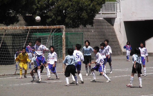 久々に怪しいおじさん小学校に現る、シリーズ(笑)本日の出現スポットは座間市立立野台小学校。座間駅を出て坂道を延々のぼり・・・ ってヘタレなので坂道を見た瞬間、タクシー乗り場に引き返したのはお約束。タクシーで行くこと、1メーター。高台の上にある小学校に到着。本日のお目当ては、県少年サッカー予選ブロックに出場する追浜U-12。しかし、何で追浜でやらないんだろうなぁ・・・■追浜U-12vs横浜港北SC立野台小学校は砂利グラ。小さな砂利が敷かれたグランドはかなりやりづらそう。追浜の選手は普段人工芝で練習しているから結構苦労するかな?と思ったら案の定。なかなかうまくボールコントロールできず、ボールがつながらない。港北の(多分)女の子2トップはかなりテクニックとスピードがあって、大島&坂田ばりに前線からプレスをかけまくる。ほかの選手もボールホルダーへの寄せが早い。守備陣は安全第一でボールを持つと大きく前に蹴りこむ。ボールを蹴りこむ&プレスが早い、で必然的にボールは空中をピンボールのごとく行ったりきたりするばかり。追浜は完全にテクニックを封じ込まれて、前半はいいところのないまま終了。ハーフタイム、秦監督のゲキが飛ぶ。これが効いたか。後半の追浜は自分達のリズムを取り戻し、徐々にボールがつながるようになる。しかし、ゴールは遠い。最悪PKかと思い始めた頃、武君のミドルシュートが決まった。武君は去年の全国少年サッカー大会でもスーパーサブとして活躍し、いくつも決定的な仕事をした選手。6年になった今も、ここぞというところでの得点感覚は健在のようだ。結局これが決勝点となって、追浜が辛勝でブロック決勝に駒を進めた。(写真:追浜U-12vs横浜港北SC)______田中健太(10)__武颯(9)_______芦村優志(8)______________橋本知幸(7)______中村凌(13)___鈴木悠斗(6)_____鬼丸敬(12)__蔭山裕之(4)_押本祐輔(5)_石渡汰一(3)__________川瀬隼太(1)__________得点: 後半16分 武颯(9)交代: 後半06分 中村凌→関根陸(11)■FC三崎vsKAZU SC上の写真を見て、ゴールの後ろにいる選手か、右奥にいる選手を見て、おっ?と思ったあなたはきっと、「観察力が優れています」と通知表に書かれたタイプでしょう。そう、2人が着ているのは、Jリーグ初期の横浜のユニ(mizuno時代)にそっくり。このユニが本日2試合目に登場したFC三崎。対するKAZU SCは緑色ベースのユニ。だったら完璧だったのだけど、残念ながら日立系。この試合は内容よりもKAZU SCの監督のお笑い系指示が記憶に残る。選手を乗せてるのか、からかっているのかよく判らない指示で、第三者的にはこっちの方が面白かった(笑)監督の指示のおかげか、日立が逆転で横浜を破った。スコアは1-2。■追浜U-12vsKAZU SC昼食タイムをはさんで、ブロック決勝戦。この試合はちゃんと足元でボールをつなげる相手との対戦だったので、追浜が優位にゲームを組み立てた。が、やはり砂利グラのせいか、肝心なところでのミスも多く、得点にならない。ようやくキャプテン田中健太君がゴールを決めたのは前半17分。DFを交わし、GKの位置をきちんと計算して、こにくいループ。後半も追浜ペースながら、後半10分にはDFラインでの中途半端なクリアを拾われ思わぬ失点。FC三崎戦の時とは一転、マジ指示を飛ばすKAZU FCの監督は、同点シーンでは飛び上がって大喜び。選手達も監督の下に走り寄って一緒に喜ぶ。同点のまま時間だけが過ぎていく。残り1,2分。今度こそPK戦だと思っていたころ、頼もしきキャプテンが左足を振りぬき、貴重な勝ち越し弾を決める。ロスタイムにはセットプレイの混戦から、関根君が3点目をあげる。スコアだけ見れば快勝の3-1。2試合連続でヒヤヒヤした試合だったが、何とか勝って中央大会に進めたのは良かった。一緒に見ていた某ユースオフィシャルサイトの管理人さんが一言。 「これぞ、追浜」 ・・・確かにいやぁ、追浜の試合はどの年代も本当に面白い(笑)(写真:追浜U-12スターティングメンバー)______田中健太(10)__武颯(9)_______芦村優志(8)______________橋本知幸(7)______鈴木悠斗(6)___中村凌(13)______鬼丸敬(12)__蔭山裕之(4)_押本祐輔(5)_石渡汰一(3)__________川瀬隼太(1)__________得点: 前半17分 田中健太(10) 後半10分 (KAZU) 後半19分 田中健太(10) 後半19分 関根陸(11)交代: 前半18分 中村凌(13)→中川健太(2) 後半06分 芦村優志(8)→関根陸(11)