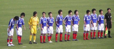 プリンスリーグ第7戦。三ツ沢陸上で桐蔭学園との対戦。個人的には初陸上。今まで何回か試合があったにも係わらず、何やかんやで観戦できず、ようやく陸上初上陸。これで、球技場、補助グラウンド、陸上と、三ツ沢コンプ(笑)記憶に残したいのはここまで。試合のことは振り返りたくないし、書きたくもない。けど、トップの試合と重なり見れなかった人も多くいたので、ごくごくごくごくごく簡単に。この試合、シュートの数は横浜8(前半5、後半3)、桐蔭12(前半8、後半4)。ヴェルディ戦(横浜が1少ない)を除くと初めてシュート数が相手を大幅に下回った。がっちりと守りを固める相手に、横浜は「個」で勝負を挑んだ。横浜の誇る攻撃陣ではあるが、やはり個の力では限界がある。シュートに行く前に潰され、カウンターを受けるシーンが目立った。失点のうち、1点目と3点目はDFラインの裏にきれいにスルーパスを通されての失点(1点目はオフサイドっぽかったが、セルフジャッジをしたものの負け)。2失点目はCKのボールをクリアしきれず、バイシクルで決められた。後半42分に桐蔭GK武田大が、ドリブルでPAに侵入した学を倒し、得点機会阻止で一発退場。このPKは学が自ら決めた。ロスタイムは4分。終了間際には成田、金井を上げ、DFラインは甲斐、岡の2バック状態。パワープレイを仕掛けた横浜だが、全く機能せず。まるでいいところのなかった今日の横浜。久しぶりの完敗。今日の敗戦で、横浜が2連勝、ヴェルディ、市船が2連敗しない限りは、グループ1位はなくなった。かなり確率は低い。3年連続の高円宮杯出場権を得るためには、グループ3位以内に留まり、かつ7月の順位決定戦で4位以内を決める必要がある。2位だったら1つ、3位だったら2つ勝たなければいけない。来週からは関クラ2次予選のためプリンスは一時中断する。その間にしっかり建て直しを図って欲しい。もちろん、関クラも勝たなきゃいけないけど。今年の夏は例年以上に熱くなりそうだ。(写真:スタメン。当銘が復帰。パリス初スタメンも記憶に残るプレーはなし)__________端戸仁(14)___________高久朋輝(8)_____齋藤学(10)_____水沼宏太(9)______荒井翔太(19)__西脇寛人(6)______パリス(2)__甲斐公博(13)_成田進太郎(3)_金井貢史(7)___________当銘裕樹(1)__________得点: 前半24分 (桐蔭:重松圭典) 後半06分 (桐蔭:重松圭典) 後半32分 (桐蔭:日高慶太) 後半42分 齋藤学(10)交代: 後半16分 中島ファランパリス(2)→岡直樹(36) 後半16分 高久朋輝(8)→曽我敬紀(15) 後半22分 荒井翔太(19)→佐藤優平(18) 後半45分 水沼宏太(9)→松尾康祐(12)