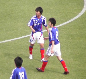 目の前ではゴールラッシュが繰り広げられていた。今日の横浜はワンタッチでリズムよくボールをつなぎ、選手同士の連動性もよくいいサッカーをやっていた。春先の絶好調の頃に戻りつつあるのかなという印象。立て続けのゴールで試合の行方は早々と決してしまった。必然的に最大の目標である全クラ出場も決定。よっぽどのことがない限り全クラ出場を逃すことはありえないが、フットワーク戦の大苦戦もあり、すんなりとは行かないかもしれないという恐れはあったので、これでひとまずは安心。今年こそ三ツ沢に戻ってきたいものだ。最大の目標を達成したにも係わらず、ゴールが次々と生まれる状況に、贅沢な話だが少々飽き飽きしてきて、どうしても後ろでアップしている選手とベンチの様子が気になる。今日のサブは、奥山、成田、荒井、亀谷、佐藤、榎本ら。前節ハットトリックを決めた榎本とユース始動日にドリブル突破に惚れた亀谷、この2人を見たかった。先発陣がいいサッカーをやっていたので、このイメージを大切にしたかったというのも判るが、サポは常に刺激を求めるわがままな存在(笑) もっと才能を!もっとスーパープレーを!和田さんカモーン!(笑)そんな筆者+10人くらい(?)の思いが届いたのは後半33分。高久に代えてついに亀谷が登場。プリンス鹿島学園戦にも出場したが、その試合はうどんを食っていて見れなかった(笑)ので、個人的に初亀谷。得意のドリブル突破を見せる場面はあまり多くなかったし、記憶に残るプレーもなかった。次の鹿島戦は代表組が不在だろうからもう少し長い時間見れるだろう。が、熊谷に雪くまを食べに行く(違)ので、またしても見れない。残念。試合終了前には後方から上がってきたパリスがボールを奪い、GKの位置を見極めたループシュートを決めた。スタンドサポが一番盛り上がった瞬間だった(笑) 挨拶後ベンチに引き上げるパリスに声をかけると、ちょっとはにかんだ笑顔で会釈をしてくれた。おめでとう、パリス。この調子でがんばれ!(写真:試合終了後)__________端戸仁(14)_________齋藤学(10)_____水沼宏太(9)____高久朋輝(8)_____佐藤優平(18)__西脇寛人(6)______パリス(2)_甲斐公博(13)_金井貢史(7)_曽我敬紀(15)__________当銘裕樹(1)__________得点: 前半20分 端戸仁(14) 前半21分 金井貢史(7) 前半26分 端戸仁(14) 前半27分 端戸仁(14) 後半02分 水沼宏太(9) 後半07分 齋藤学(10) 後半19分 端戸仁(14) 後半21分 齋藤学(10) 後半27分 端戸仁(14) 後半37分 水沼宏太(9) 後半40分 齋藤学(10) 後半43分 パリス(2)交代: 後半33分 高久朋輝(8)→亀谷賢秀(26)