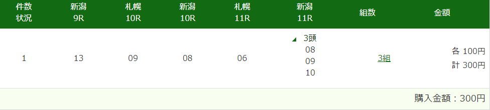 ⑤8(6着) ,9(3着) ,10(5着)