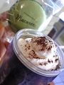今日、スタバでお昼しました。 ついに新作のダークモカフラペチーノと抹茶マカロンを購入 フラペチーノは上の生クリームとコーヒーを少し混ぜてちょっぴりあまめで飲んで、 そのあとスプーンですくって触感を楽しむ。 そんでもって最後に余った少し苦い部分を溶かして ストローで吸うのがオススメ☆あくまで持論 ・・・。抹茶マカロンはさくらマカロンよりさっぱりで食べやすかった。お昼はわりと空いてていいですよ~。