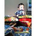 ベビーにとっての初正月は・・・私にとって雑巾との格闘でした・・・。なぜかと申しますと、お節に手を伸ばしたベビー、煮豆をぐちゃぐちゃぽーい!ぽーい!机も床もベタベタ。先が・・・