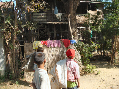 ミャンマー(ビルマ)のピイの町から約14kmのシュエダウン村。今までだと,いろいろな町や国を混ぜてバラバラにUPしたが,この村だけは続けてUPしていこうと思う。それが終われば,またいつものように,あちこちの国をUPしていく予定だ。数日後には,ラオスをUPするつもりだ。 気まぐれで計画性がないので,シリーズを作っても,いつも途中で終わってしまい,新しいものを考えてしまう。カテゴリー(国別など)に分ければ,あとから見やすいことはわかっているのだが,これだけの数をUPしてしまうと,今から分けていくのは,これまたたいへんで面倒くさくなってしまった… 昨日にUPしたパゴダを出ると,今度は表にいた少年たちがついてきた。ゴミを拾い集めている。空き缶などのお金になるものを集めているようだ。カンボジアでは,同じような少女たちと何回も出会った。 途中の家で売っていたスイカをもらったようだ。もしくは,この少年たちの家かも知れないが…そのスイカを,私にもくれた。「チェーズーティンバーデー(ありがとう)!」と言って食べた。厳密に言えば,カットしたフルーツ(スイカは,野菜だが)は,衛生的に問題がある場合があるが,気にせずに食べた。親切なのは,大人も子どもも同じなのだ。ここが,ビルマ人のいいところだ! 少年たちと一緒に歩く。途中で,赤ちゃんを抱いた男性に,かなり訛のある英語で声をかけられる。「ここで,休憩したら?」見ると,CD屋のようだった。DVDも売っている。せっかくなので,休むことにした。 「あなたの店か?」,「違う!」じゃあ,この店は??「この店の主人は,今どこかへ行っている!」…あれま!「私の店はこっちだ!」,「何の店??」,「それは,秘密だ!!」…?? しばらく,ゆっくりと話をした。日本のことを聞いてきたり,長井さんのことにも触れていた。情報に制限があるミャンマーの田舎でも知っているんやな!!と知った。現代文明は,かなりの進度で進んでいるようだ。 向かいでは,おばちゃんが何かを揚げている。売り物だろう。 民家も,いろいろなものがある。これは,結構しっかりとしているように見える。 先ほどのおじさんに,「向こうに古い建物がある。」と言われていた。なんの建物かわからないが,使われていないようだ。上に,1925と書いてある。建てられた年号となると,80年以上前になる。 路上に台を出して,なにやらゲームをしている。 こんな家もあるのだ。ミャンマーの旗が掲揚されていたので,役人か?? 一応,舗装された道があちこちに続く。 電線に木を噛ませてある。接触しないようにしてあるのか??そういえば,この国の電力事情は極めて悪い。ピイの町でも,停電はしばしばあった。この村なら,もっとあるだろう。昼間は,自家発電をしていなければ,電力は来ていないかも知れない。 しばらく歩くと,またパゴダが見えてきた。同行している少年たちが「パヤー!」と叫ぶ。田舎の村なのに,こんなにいくつも大きなパゴダがあるのかと感心した!パゴダでの話は,また明日か明日以降に… シュエダウン村編は,まだ続きます! ↓ はげみになります クリックをお願いします!! よろしくです!! ↓2つのブログランキングに参加しています。クリックするだけでOKです。よろしくです。ぜひぜひお願いします!人気blogランキングへこちらも!クリックで,本サイトへ!本サイト