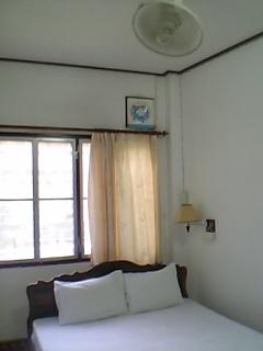泊まるホテルは、街なかにある「カムキン・ゲストハウス」にした。乗り合わせのソンテウが、ちょうど前で止まった。エアコン・冷蔵庫・電話は無し、ファンとホットシャワーはある。4時で電気も来ている。1泊約680円だ。