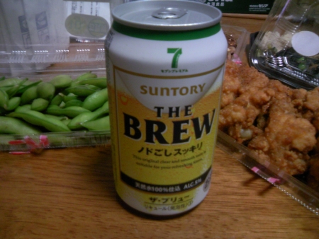さて、前回に続きまして今話題の100円ビールのテイスティングレポートです今回ご紹介するのは、セブンアンドアイとサントリーの共同開発の「ザ・ブリュー ノドごしスッキリ」です。セブンイレブンで123円で売ってます。この商品も「新ジャンル」と呼ばれているビールに似たもの商品ですが、酒税法的には、「リキュール(発泡性)(1)」というジャンルになります。数年前、発泡酒の税率が引き上げられたことにより生まれた「第3のビール」は、麦芽以外の原料で作られており、「その他の雑種(2)」という分類でした。正直この種のビールは、パンチのない感じでした。その後、酒税法の改正により、原料によらず発泡性のあるものを発泡酒扱いとされ税率が変更になり、「第3のビール」の税率のメリットがなくなってしまったのです。そこで、各社が力を入れてきたのが、このリキュールタイプなのです。発泡酒とスピリッツを混ぜた混成酒。チューハイみたいなものです。いわば「第4のビール」といえます。※お店では、以前のもとの区別せず第3のビールまたは新ジャンルとして扱っています。さて、複雑なお話はこのくらいにして味のレポートとまいりましょう。ノドごしスッキリというタイトルどおり、飲み口がぐっとくる感じの辛めのテイストです。後味が少し微妙な感じがありますが、こちらもビールとの違いは感じられません。とっても完成度か高くおいしいと思いました。次回は、イオン系のPBを試します。この分だと期待大です。 今日の楽しさランクは、「ニコニコ」です。