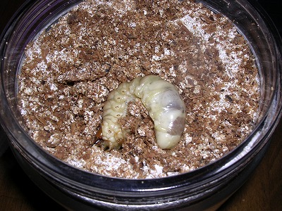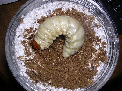 タカさんからの頂き物の北峰産ホーペ幼虫♂の餌替えをしました。。。でも体重は23.8g?????うっっ縮んでいる??ショックです>o<実はこの幼虫は10月に餌替えをして今回がビン5本目(^ ^)ゞ当初ひと月で交換の大暴れで。。。やっと最近落ち着いたのですが、それでも餌が無くなる無くなる。。。まあ今回は無事に羽化することだけに集中しましょう。って何時も同じことを言っているような。。。↑皆さ~ん。ワンクリックお願いしま~す。(^-^)/ 下位ですが、がんばりま~す。