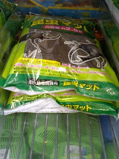 いつも利用している100均セリアにこんなものがありました。昆虫マット2.5L2.5Lで100円なら10Lで400円です^-^よくある格安マットと比べたらどうでしょう。確か10Lで450円くらいではなかったでしょうか。少し安いか。。。その一画は昆虫用品売り場?ってほど大げさではありませんが、色々売っています。カブトムシの幼虫。。。100円コバエよけシート3枚。。。これは樹脂シートではなく、不織布でした。あとはゼリー少々。。。保水液。。。等々100均がホームセンター化してきました。まあ言ってみれば100均商品を扱うホームセンターな訳か。。。フムフム。。。ビッダーズ昆虫オークション最近フリマでは生き虫の出品が禁止となりました。でも昆虫グッズはチェックの価値あり!楽天昆虫グッズ販売ページへ~(^-^)/ビッダーズの昆虫用品を主に集めました!!ビッデスト昆虫の餌最近の一番人気を表示していますd(^0^)bこちらもチェックを欠かせない!楽天特撮フィギア販売ページです(o^-’)b ****************************************************************************先日のアンケートをしばらく掲示します。第2弾!!アンケート作成及び投票はコチラクワカブなんでもアンケート!!第1弾!!アンケート菌糸ビン何使ってる?****************************************************************************