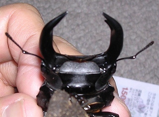 なんか嬉しくて連続出場です。計測しましたが、体長75mm、アゴ幅6mmシロウト計測ですが、体長は間だお尻が出ているので、上翅までで計測。。アゴはノギスがギリギリ音がしてすり抜けた状態で6mmでした。ただ、画像の下側のアゴは少し狭いですね。左右に差があります。基部は計ってません。。。正確な測り方を知らないからですが。。(^ ^)ゞ幼虫時の最大体重は24.2gで。。実はコイツは大暴れして合計6本のビンを使ったヤツなんです。幼虫管理表も空きが無いため記載していない^^最後はかなり縮んだので小さいかなって思ってましたが。。75mmあるとは思いませんでした。血統ってすごい@_@の一言ですね。ビッダーズ昆虫オークション最近フリマでは生き虫の出品が禁止となりました。でも昆虫グッズはチェックの価値あり!楽天昆虫グッズ販売ページへ~(^-^)/ビッダーズの昆虫用品を主に集めました!!ビッデスト昆虫の餌最近の一番人気を表示していますd(^0^)bこちらもチェックを欠かせない!楽天特撮フィギア販売ページです(o^-’)b ****************************************************************************先日のアンケートをしばらく掲示します。第2弾!!アンケート作成及び投票はコチラクワカブなんでもアンケート!!第1弾!!アンケート菌糸ビン何使ってる?****************************************************************************