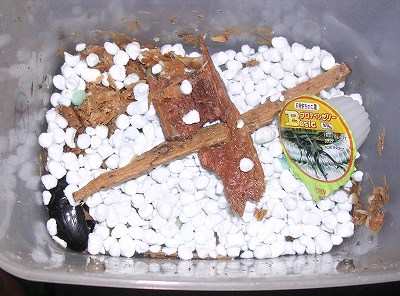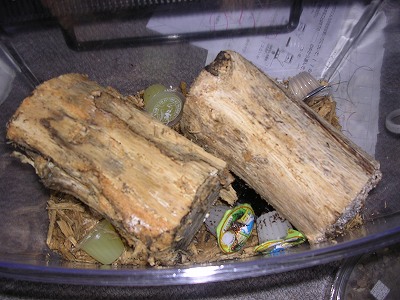気合の静岡県I産オオセットです。材は自作カワラ材&自作オオヒラ材の2本。。。入魂のセット~!!但し、カワラ材は他の菌も繁殖していて半腐り。。><オオヒラ材の方は完璧な出来具合。。。本日、中部にお住まいのdafriendsさんから静岡県I産オオの♂が届きました。dafriendsさん、ありがとうございます。少々高齢なペアーとなりましたが、先夫が他界した後、我が家の後家さんも これが最後のチャンスと思い再婚させた次第です。この産地の幼虫を得る事を楽しみにhpを立ち上げたようなものなので。。。気合の入り方も違います。ところが。。。いざハンドペアリングをすると♀が凶暴に追い掛け回して、♂も怒ってしまい。。。1回目のお見合いは失敗!。。。(^ ^)ゞこれではしょうがないので、大きめのセットをしてしばらく同居させることにしました。♀♂の隠れる場所を用意しながら、だんだん仲良くさせる戦略です。うまくいくかな~^-^/ビッダーズ昆虫オークション最近フリマでは生き虫の出品が禁止となりました。でも昆虫グッズはチェックの価値あり!楽天昆虫グッズ販売ページへ~(^-^)/ビッダーズの昆虫用品を主に集めました!!ビッデスト昆虫の餌最近の一番人気を表示していますd(^0^)bこちらもチェックを欠かせない!楽天特撮フィギア販売ページです(o^-’)b ****************************************************************************先日のアンケートをしばらく掲示します。第2弾!!アンケート作成及び投票はコチラクワカブなんでもアンケート!!第1弾!!アンケート菌糸ビン何使ってますぅ?****************************************************************************