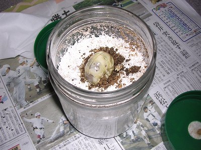 久々に幼虫のエサ換えをしました。この幼虫。。この後クルリと一回りして、もぐら叩きのもぐらのごとく頭だけ出して周りを見渡し、えっ何?!という感じでしばらくボーっとした後、きびすを返して潜っていきました。写真を撮りたかったのですが、一瞬遅れ、カメラをかまえた時には速攻で潜った後でした。。。残念!! (^ ^)ゞさすがにオオの幼虫は2頭くらいとなりました。後はトカラが4頭。。この時期の突然死も多く、しばらく見ないウチに暴れた幼虫が黒くなっているのを発見したりしています。かなり暑かったので、ガスが発生したのかもしれません><ビッダーズ昆虫オークション最近フリマでは生き虫の出品が禁止となりました。でも昆虫グッズはチェックの価値あり!楽天昆虫グッズ販売ページへ~(^-^)/ビッダーズの昆虫用品を主に集めました!!ビッデスト昆虫の餌最近の一番人気を表示していますd(^0^)bこちらもチェックを欠かせない!楽天特撮フィギア販売ページです(o^-’)b ****************************************************************************先日のアンケートをしばらく掲示します。第2弾!!アンケート作成及び投票はコチラクワカブなんでもアンケート!!第1弾!!アンケート菌糸ビン何使ってますぅ?****************************************************************************