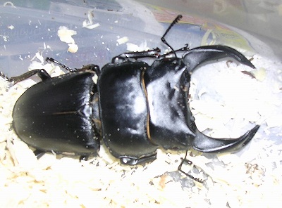 今日はお近く(散歩にちょうど良い距離)にお住まいのフォレスタさんのお宅に伺って巨大国産オオをこの目で見てきました。私はマツノにも行った事があるし、巨大オオも見たことがあるつもりでしたが。。。認識が根本的に間違っていました。それはそれは驚くべき太さの個体で、全体の印象はアンタエウス!!@@漆黒のアンテと言うべき胴体をしています。オオアゴはもちろん国産オオですが、それが又切れのよい角度を持った極上のアゴ。。@@コレを飼っていたら、外産オオクワは要らないヨ。。へっ。。て感じでした^-^あまりにビックリして写真を撮ってくるのを忘れてしまいました。。。バカが~(^ ^)ゞ血統はマツノ久留米。。確か78mm。兄弟3匹そろって同じ特徴を持ったチョ太な国産でした。アリえん@@お近くなので又伺って写真を撮ってきますね^ ^;実は爆産したマツノ富士宮オオと佐賀産三根町オオの幼虫をさし上げに行ったのですが、北峰ホーペを頂いてしまいました↓カッコいいっしょ^-^下はウチで羽化した北峰ホーペです↓どちらの北峰もカッコいいですが、オオアゴの厚みはウチの北峰かなぁ~うーん再認識^-^ビッダーズ昆虫オークション最近フリマでは生き虫の出品が禁止となりました。でも昆虫グッズはチェックの価値あり!楽天昆虫グッズ販売ページへ~(^-^)/ビッダーズの昆虫用品を主に集めました!!ビッデスト昆虫の餌最近の一番人気を表示していますd(^0^)bこちらもチェックを欠かせない!楽天特撮フィギア販売ページです(o^-’)b ****************************************************************************先日のアンケートをしばらく掲示します。第2弾!!アンケート作成及び投票はコチラクワカブなんでもアンケート!!第1弾!!アンケート菌糸ビン何使ってますぅ?****************************************************************************
