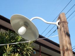 ----これまで10年以上、この形の外灯を探していましたぽっ。あちこちの古道具屋に出かけては物色ぽっ。でも、どこもありません号泣。ネットで買えば簡単ですが、7000円余もするので、何とか安価なものを・・・と思うのと同時に、やっぱり「本物」が欲しいスマイル・・・。今回ラッキーにもただでゲット出来、大満足ですスマイル