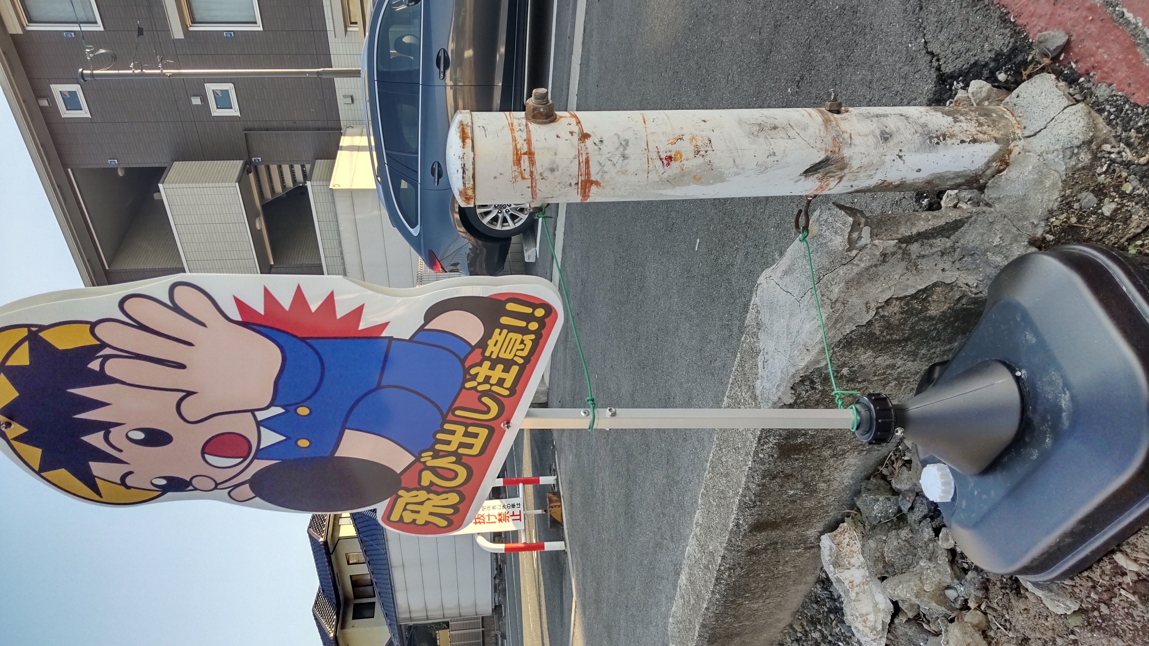 ・先の交通事故で、当自治会が設置している「飛び出し君」の看板が、壊れてしまいました・・そこで事故の当事者が保険を使って新調してくれることになり、この度業者がやってきて、 取り付けてくれました。 ・小生がこの看板を買ってきて、取り付けると約4000円で出来ますが、業者がやると なんと44、000円もかかります。・廃材処理費やら、工事費やら、出張費やら、人件費やら、事務手数料やら・・・。 ほんとに、ちょっとしたことを他人に依頼すると、飛んでも無い費用がかかりますから、 出来るだけ、出来ることは自分でやることにしましょう。