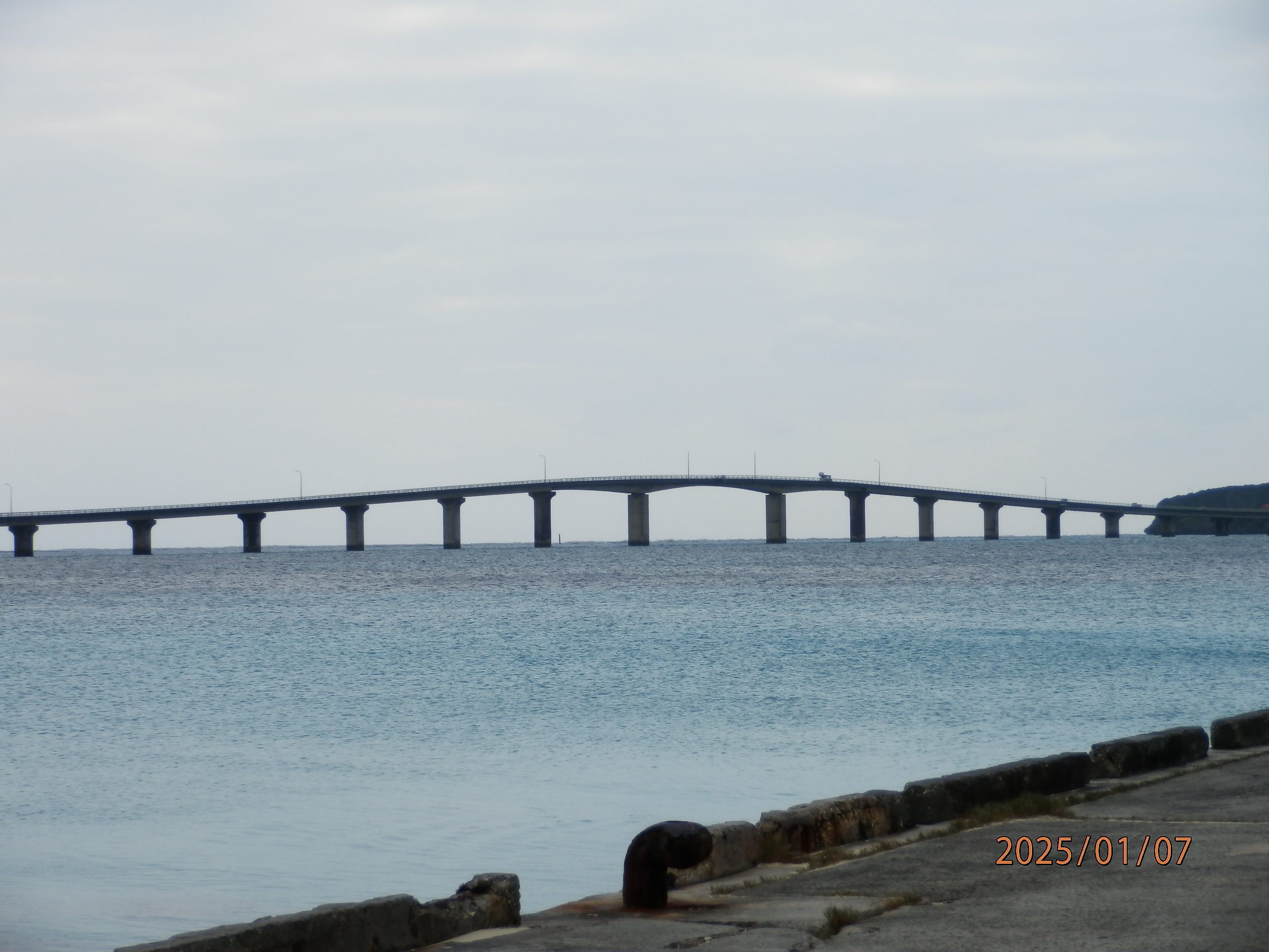 1月7日から3日間、「宮古島 5島めぐり」に行って来ました。沖縄の那覇空港で乗り継いで、宮古島空港。初日は、サンゴが砕けて出来た細かな粒で出来た浜「前浜」と「来間大橋」1690mの渡橋。 二日目は、「池間大橋」1425Mの渡橋と、通行料金を徴収しない橋として日本最長 3540mの「伊良部大橋」の渡橋。3540mはスカイツリーの634m、「ムサシ」と同じで、「サンゴ礁」と同じ音合わを意識して作ったとのこと。 その他、「海中水族館」や地中の海水から作る「雪塩製塩所」、3日目には宮古島最東端の岬、「東平安名崎」に行き、強風の中、灯台見物。台風の時は、すごい猛風だろうなぁ。宮古島本島は、住民数55000人の島で、思っていた以上に、大きな島だった。しかし、南国の島ということで、軽装で出かけたら、とんでもなく寒く、風邪をひきそうだった。ホテルの部屋のエアコンには暖房の機能がなく、個別に電気暖房機を貸してもらった。伊良部島の隣の「下地島」にも空港があり、ここはパイロット養成の空港で、大きなジェット機がタッチアンドゴーの練習を繰り返していた。どこに行っても海が見え、またその海の色が、紺碧と言うか、エメラルドグリーンというか、綺麗なこと、この上無しでした。