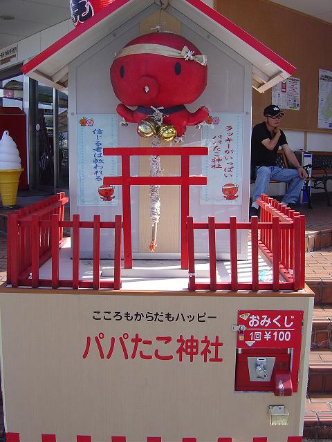 皆様、長らくご無沙汰しておりました~色々と調べたりやりたい事が沢山あったので更新をちょっとサボってしまいました。しばらくブログから離れている間に新しい機能まで増えてる~今度の絵文字は動くのか~サボってた分一気に使ってみましたさて今日はちょっと遅いのですが先週末、たこフェリーに乗って妻の郷、徳島県まで行ってました明石海峡大橋を使った方がアクセスは早いのですが私は、徳島に行くときや淡路島にキャンプなどに行くときも必ず、たこフェリーを使用します。その訳は・・・・楽しいから!まず、明石のフェリー乗り場にはたこ神社!100円でカプセルに入ったおみくじが出てきます。この日、おみくじをしてみましたが“笑顔でハッピー”とだけ書いてありましたそして公衆トイレ!さらに自動販売機!こうなると、サブリミナル効果!?的にたこフェリーの虜になってしまいます。フェリー船内もグッズ販売やガシャポンがあり、河内屋菊水丸さんの歌うたこフェリー音頭が流れています。たこフェリー音頭は、たこフェリーのサイトでダウンロードできるので楽しんでみてください。グッズも購入できます。今回、たこフェリー音頭のなぜか3番の歌詞がバックプリントされたTシャツが発売されてたのでおもわず、買ってしまいました~フェリースタッフのみなさんもこれを着てました。なかなか良い感じのTシャツなのでサイトで見てくださいね~そしてフェリーからの眺める海はとても綺麗!明石海峡大橋も真下から楽しめます!みなさんも、淡路島や四国へお出かけの際は是非たこフェリーに乗ってくださいね~楽しいですよ~