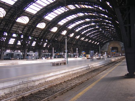コモ湖はミラノの北で特急列車で約40分程度で着く。Centraleから列車に乗り、Como San Giovannniという駅で降りて、歩いていくと湖が広がっている。さて、それまでの道中のはなし。Biglietteriaというのが駅には大きく書いてあってそれが切符売り場らしいことが分かる。切符をくださいというのは"Uno bigliette per Como San Giovannni, per favore."と本に書いてある。その通り、読んでみた。biglietteをビグリエッテと読んだのだが、一応分かってくれたらしい。しかし、すぐにbiglietteはビリエッテだということがわかる。やけくそでも、口に出していってみるとそこに言葉の先生がいるわけだから外国にいると言うことはすばらしい。小学生のころthirteenをアメリカの小学校の移民向けのクラスで徹底的に発音させられた。自分で結構うまくできていると思っても許してくれない。おかげでこのthirteenについては“トルルティーン”見たいな感じで前歯の間を平たくした舌がすごいスピードですり抜けていけるようになった。どのthについてもこれができればいいのだが、他の単語はそこまでスパルタ教育を受けなかったのでそれ簿度でもない。 さて、そうやって列車に乗り込む。Classe 2と書いてあるのでseconda classeらしい。2等車ならば自由席かと思ったのだが、空席があってもみなどんどんと進んでいく。お供のSignoritaとなんでここみんな座らないんだろう。と思いながら、ここだれかいるの??と英語で聞いてみると、ここに番号かいてるでしょと言われ、始めて指定席なのだと分かった。乗った列車はユーロスターのIC(Inter CIty)で結構快適。ヘッドレストが席の外側だけについていて、隣の人にもたれかからなくても眠れるようになっている。 帰りもICで帰ってきたが、予定変更して早いのに乗りたい!というと駅員はこのままでOKと指定席を変えてくれる様子も無い。確かにComoはMilanから一つ目の駅なので、空いてれば座ってOK帰りも無事座ることができた。改札は駅の入り口にはなく、途中車掌がパッチンとしにくるだけ、改札のところでばたばたと走っている人もいないし実に大人の雰囲気の駅だ。Milano Centraleに着くといかにもヨーロッパの駅ですという半円筒の終着駅のドームが見えてきて思わずシャッターを切った(デジタルなので本当はシャッターを切っていない!)。