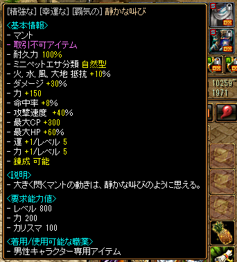 地味に運+100あるので、トータルの運+は比率装備よりちょい少ないくらいで済んでます。