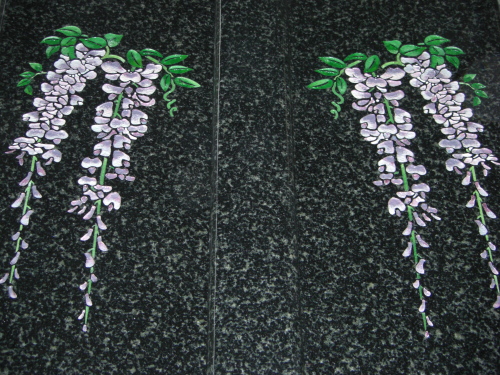 TVや新聞の情報筋によると、草剪が泥酔状態で、全裸で公園を大声で叫びながら・・・・・云々の話題じゃなくて、 明日からGWに入る会社があり、今の大不況を反映してか最長16日間ものGWを設定してあるところもあるようです。 でも、雲仙天草国立公園の中にある松島で生活している我々にとって5月の連休は最高の被害を被っています。今の季節は肉体労働者にとっては最高の季節我が家の仕事も、動きがちょっとだけ活発となってきたけれど毎年GWの、天草五橋の国道324号線は大渋滞迂回のない国道は、とにかく身動きがとれない状態となってしまいます。いったいどうなることやら 今日、午前中に出かけた営業では、期待していた納骨式墓石でなく個人の墓石ではあったが、御契約を頂き感謝している。 午後から二年前から動いている県工事の墓石移転作業の打ち合わせでクレーン業者さんと現場確認と、作業内容の打ち合わせを済ませた。この作業はGW明けの作業となるかな? そして自分が工場を留守にしているその間、長男は、仏石の金箔や漆塗料の着色を済ませてくれていた。 自分も、昨日手がけていた“藤”のデザインの着色を仕上げたが、何とか上品に仕上げることが出来たと自負しているが・・・どうだろう 観音扉に彫りこんだ、BELLオリジナル、【藤】デザイン彫刻と着色 金箔貼りや着色を済ませたが、明日の天気予報は雨で、27日(月)から建立作業に取り掛かることにしようと思っている。