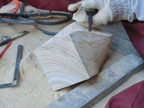 朝から工場のエンビパイプの水道管が二カ所で破裂していて強烈な噴水状態で漏水していて周りは水浸し状態となっていた。昨日の最低気温が-5.5度まで下がり、昨日のうちに破裂していて水道管の中の氷が融けだした今日、一気に噴き出したものと思われる。 配管が複雑だったため、取引会社に修理依頼の電話を入れたら「60件入っていますから、しばらくお待ちください」だと水道管破裂なんて、昭和60年に工場を新設してから初めてのことで今回の異常低温に対する考えの甘さがこのような結果となってしまった。 そこで水を使った切削作業などが出来ない状態だったので三代目は、昨年11月に熊本県伝統工芸館で開催した石あかり展で追加注文をいくつか受けていたので、その作品作りに集中した。指定寸法に切削した天草木目石先ずは、墨付けから彫刻の様子彫刻のアップ画像完成したらこのような作品となります この作品は、二個の追加注文があっているけど今後も墓石施工などのメイン作業の合間を縫っての制作となるので注文して下さった方には、しばらく待ってもらうことを告げている。