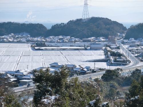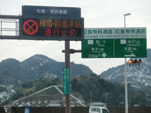 今日の最低気温は松島町阿村で-5.5度、最高気温は2度でまるで東北・甲信越地方の寒さを九州で感じるような厳しい寒さとなった。 昨日から降り積もった道路の雪は、アイスバーン化して危険な状態で小中学校も臨時休校となり、屋外では雪と戯れ遊ぶ子どもらの姿があった。 しかし、陽が射し気温が2度まで上がった頃から雪は溶けだし午後から車の使用ができる状態となったので工場へと向かったがその後も湿った雪が舞い続け底冷えする状況だった。 熊本・天草・松島でこんな雪景色が見れるのは数年に一度なので随分と雪融けが進んでいたけど、楽天ブログに画像を残しておこう通勤途中で見える阿村地区工場入り口に飾った力士像工場に併設している霊園今日夕方まで降り続いた雪工場に併設した練習場雪を被るシイタケの傘