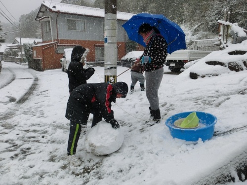 夜明け前に雪が降り始めてから日中も降り続き地元上天草市松島町阿村の気象観測地点では、最高気温が0度で、最低気温が-2.5度となっていて降り続く雪は溶けることなく積もり、現時点で10cmの積雪となっている。今後も降り続く予報なので、更なる積雪と低温には留意が必要だ 天草の地で今までに経験した積雪は、夜に降り積もった雪は、日中には溶けてしまっていたが今回のように、日中も降り続き更に積雪する光景は初めて目にする。 しかし、その積雪をよろこんで遊ぶ近所の子どもたちは元気タライをソリにして滑ったり、雪だるまをつくったり・・・。雪あそび 自分の愛車である軽トラックは雪の重みと冷たさに震えながらじっと耐えて、駐車場に停まったまま本日の走行距離は0Km。愛車も震えてる今夜も冷え込みそうなので、明日も雪が残り身動きがとれないだろう。